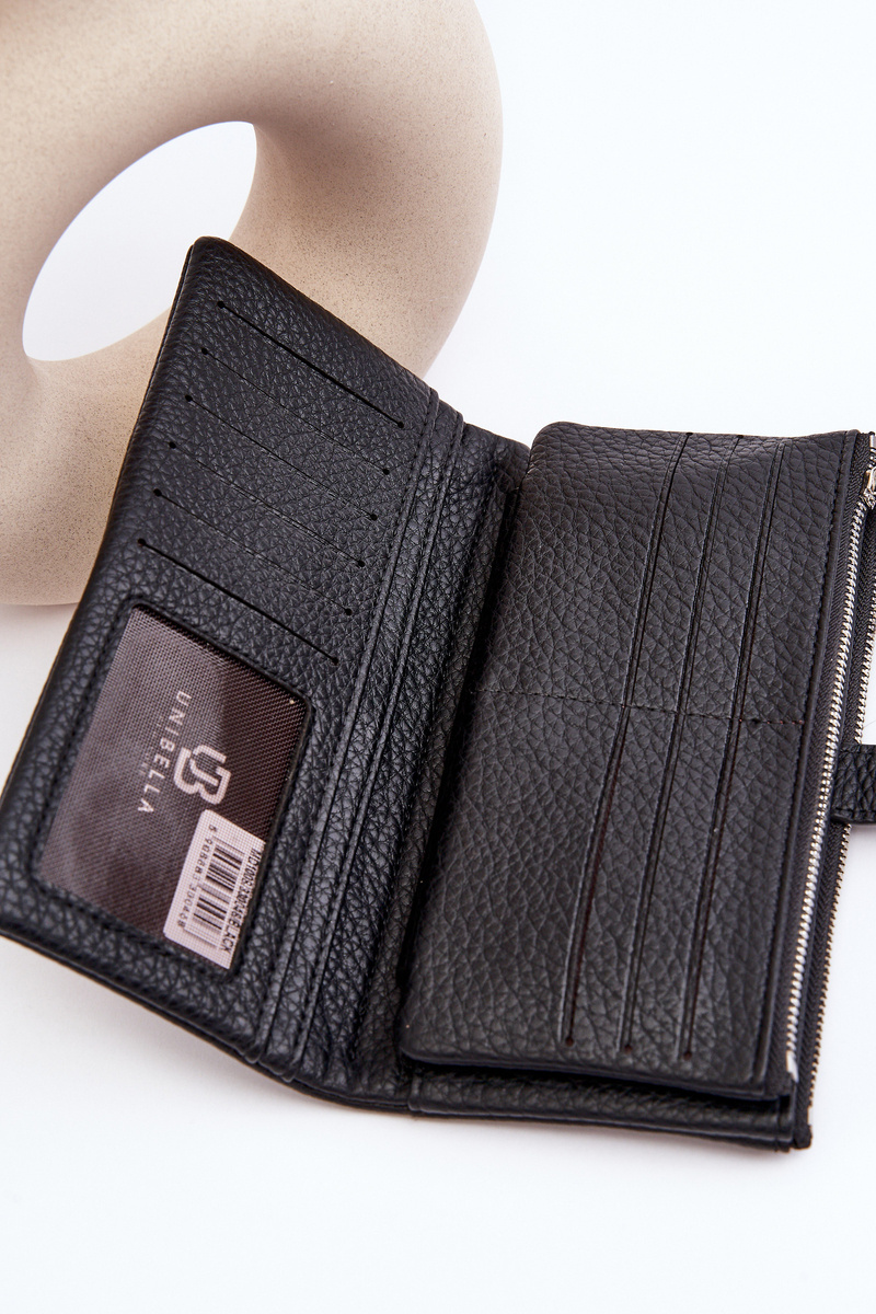 Veľká, dámska peňaženka vyrobená z ekologickej kože. Pripevnený práškom a zipsom. Vo vnútri sú otvorené komory a jedna uzavretá zipsom. Peňaženka okrem toho obsahuje aj veľa miest pre vizitky alebo kreditné karty. Táto peňaženka určite ubytuje tie najuznávanejšie veci!