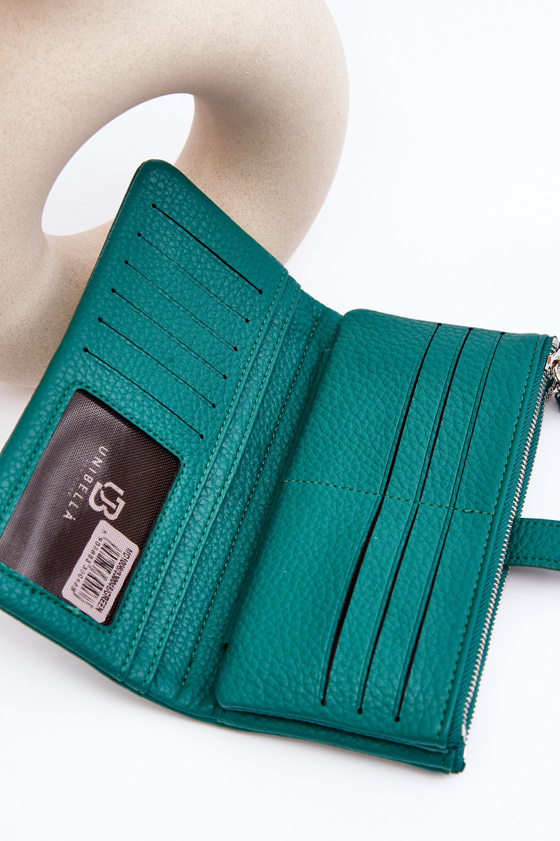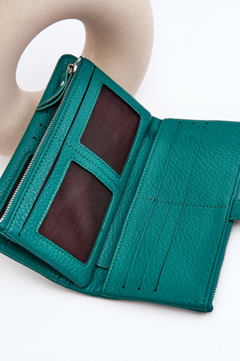 Veľká, dámska peňaženka vyrobená z ekologickej kože. Pripevnený práškom a zipsom. Vo vnútri sú otvorené komory a jedna uzavretá zipsom. Peňaženka okrem toho obsahuje aj veľa miest pre vizitky alebo kreditné karty. Táto peňaženka určite ubytuje tie najuznávanejšie veci!