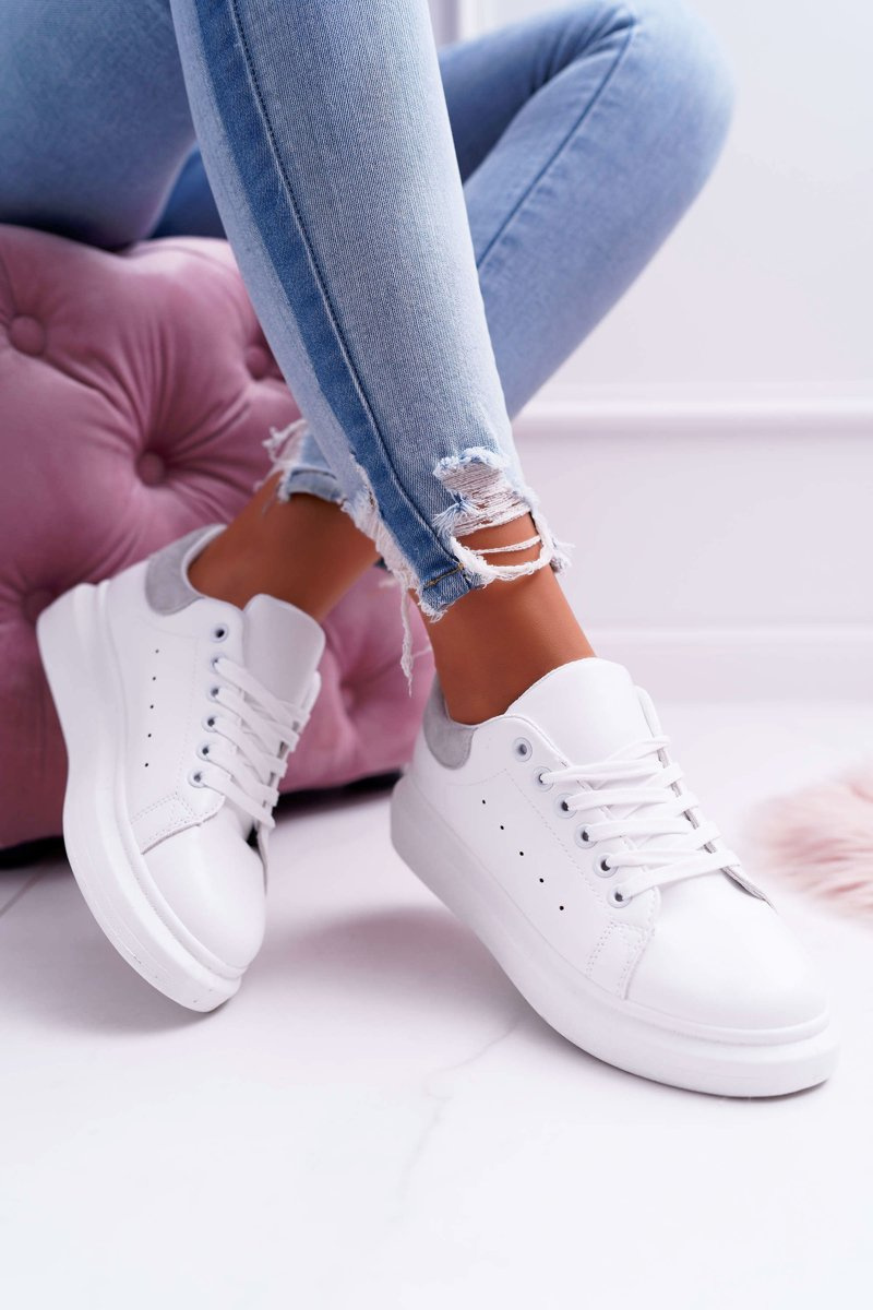 Dámska športová topánka hrubá podrážka biela sivá sukňa