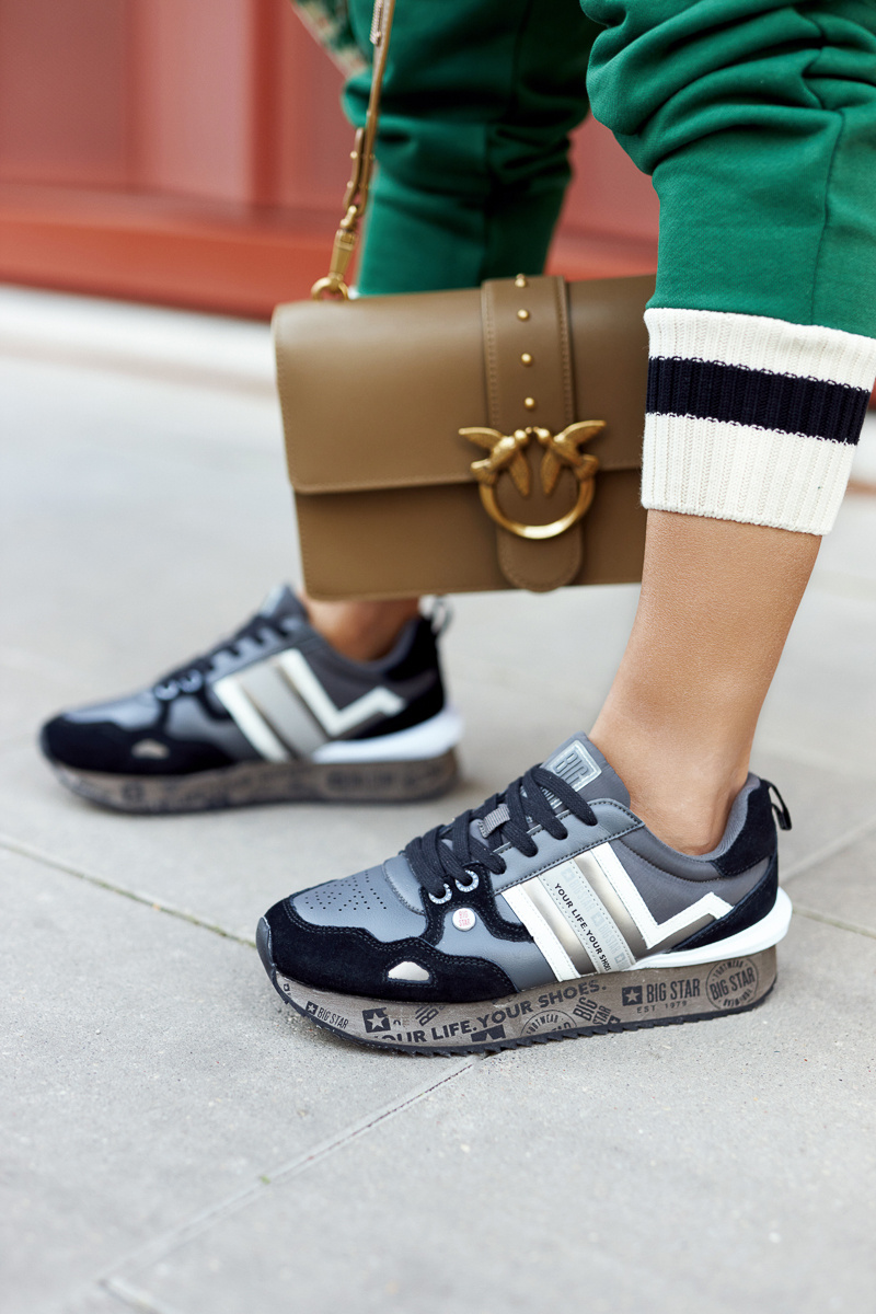 Unikátne topánky od renomovanej značky Big Star. Topánky boli vyrobené z prírodnej semišovej kože, ekologickej kože a textilného materiálu. Topánky majú podrážku na plošine. Na chrbte nad podrážkou je dekoratívny prvok vyrobený z plastu. Topánky poteší mnohých z vás svojím vzhľadom! Nezabudnite skontrolovať našu kolekciu veľkých hviezd. Pri výbere veľkosti navrhnite tabuľku veľkosti.