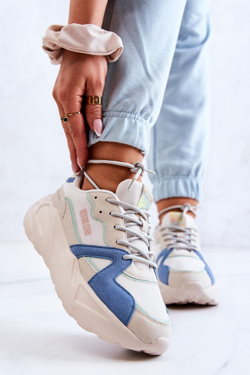 Športové topánky s veľkou hviezdou. Majú klasickú väzbu pre okrúhle šnúrky. Vyrobené z vzdušnej látky, ekologickej kože a ekologického semišu. Vložka pamäťového penového systému si pamätá tvar chodidla, poskytuje perfektné prispôsobenie, absorbuje otrasy, je odolný voči deformácii a umožňuje vám odpariť vlhkosť a upraviť teplotu. Zaoblený nos. Masívna plošina vyrobená z plastu. Pri výbere veľkosti navrhnite tabuľku veľkosti.