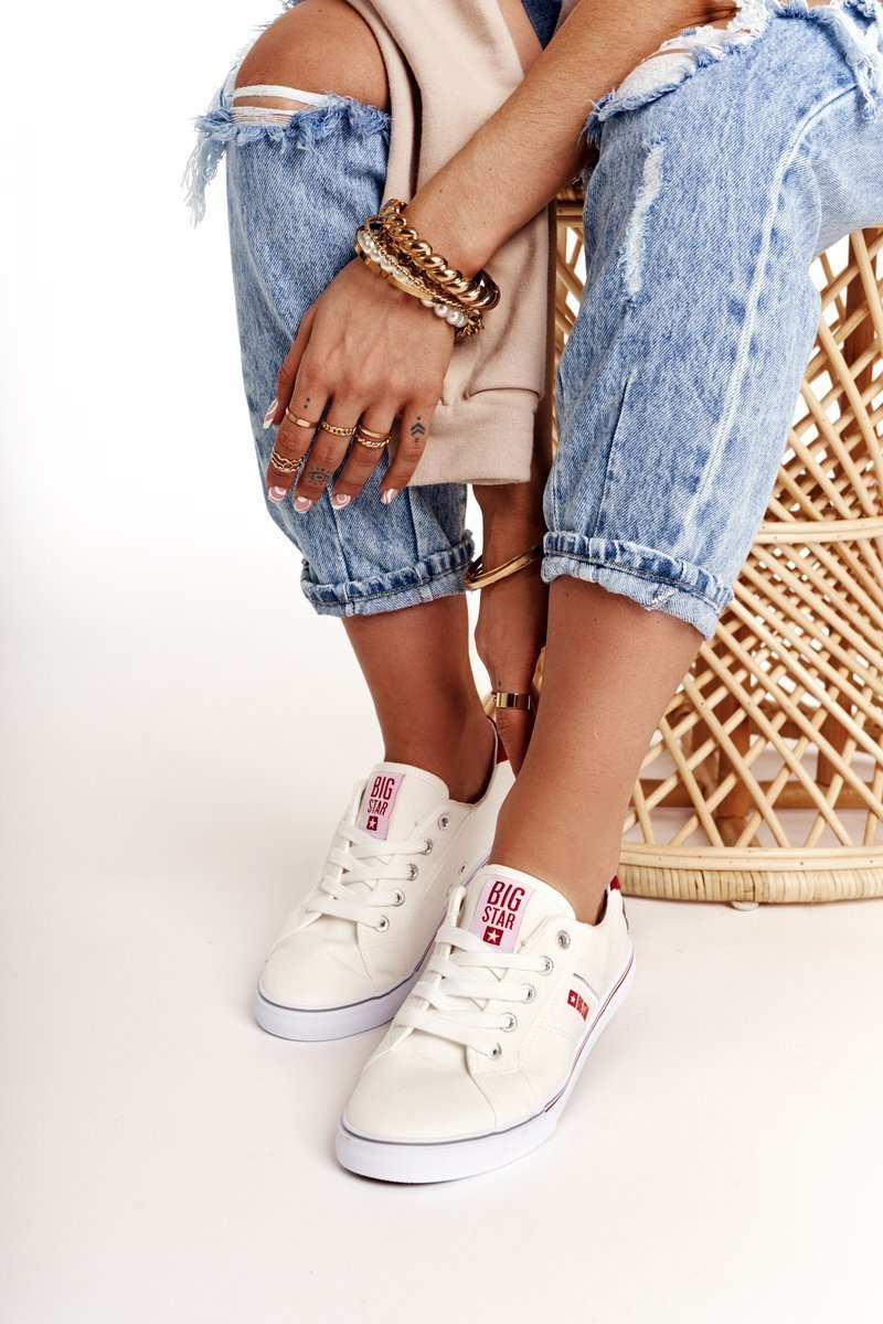 Dámske tenisky poľskej značky Big Star. Klasické tenisky sa zhodujú s mnohými štýlmi. Topánky sa dobre prispôsobujú tvaru chodidla, majú mäkkú, materiálovú vložku a podrážku nekrip. Nezabudnite skontrolovať našu kolekciu veľkých hviezd. Pri výbere veľkosti navrhnite tabuľku veľkosti.