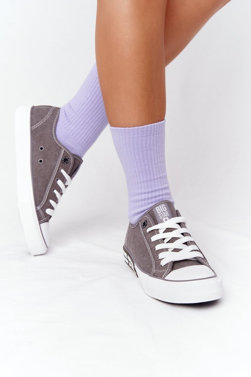 Dámske tenisky poľskej značky Big Star. Klasické tenisky sa zhodujú s mnohými štýlmi. Topánky sa dobre prispôsobujú tvaru chodidla, majú mäkkú, materiálovú vložku a podrážku nekrip. Nezabudnite skontrolovať našu kolekciu veľkých hviezd. Pri výbere veľkosti navrhnite tabuľku veľkosti.