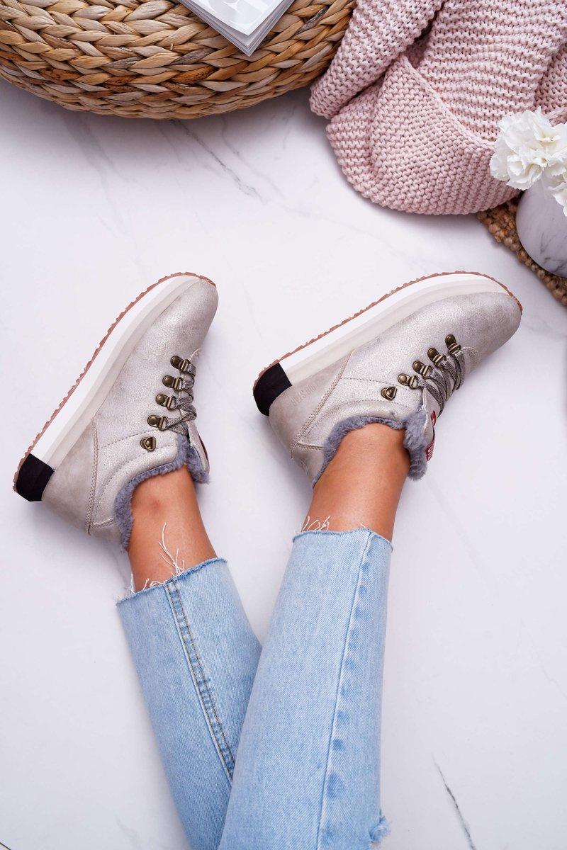 Štýlová športová obuv od spoločnosti Big Star, teraz v novej verzii! Štýlový vzhľad s kožušinou okolo hornej časti. Obuv nastavená na vysokú podrážku. Pri výbere veľkosti navrhnite tabuľku veľkosti, ktorá je k dispozícii po vznášaní alebo kliknutí na danú veľkosť.