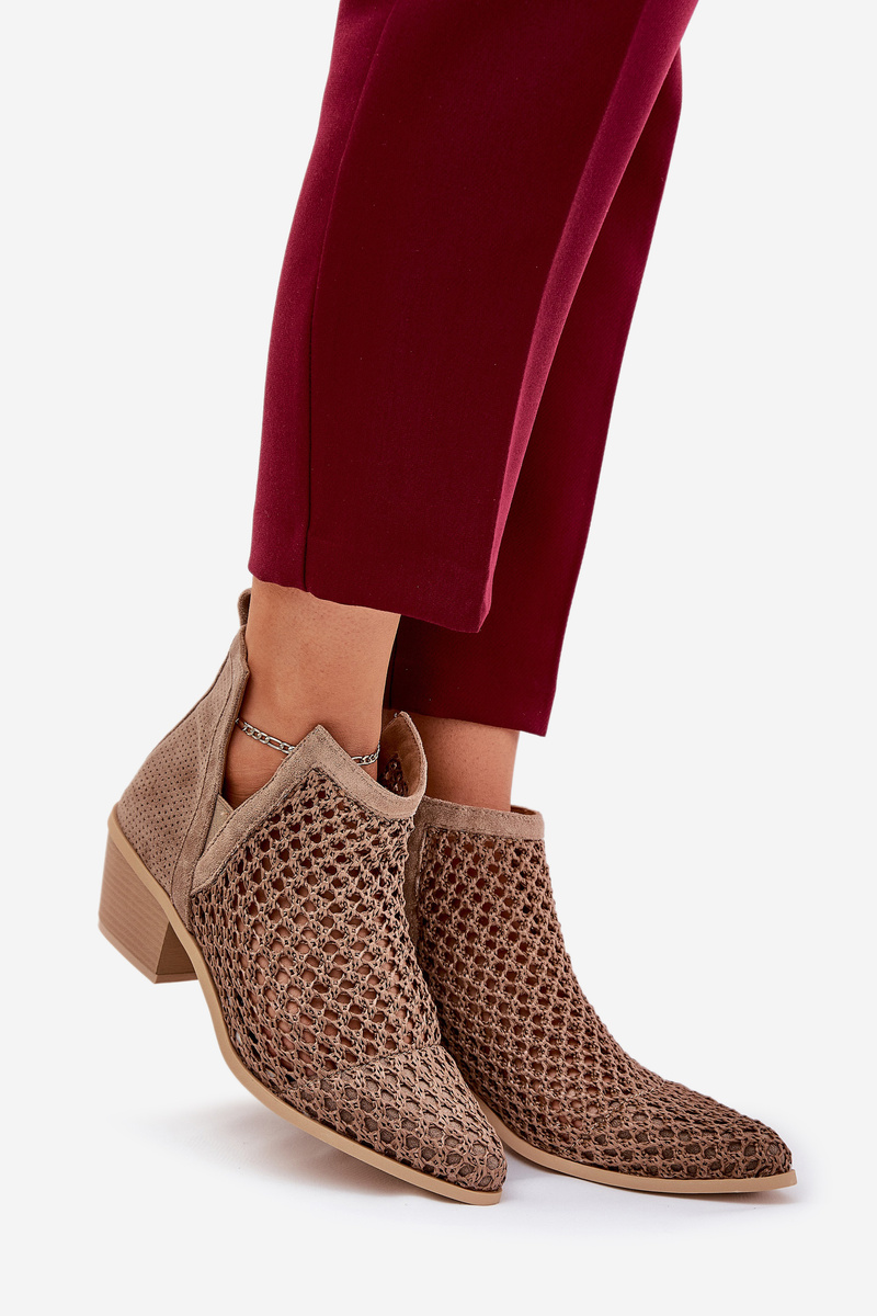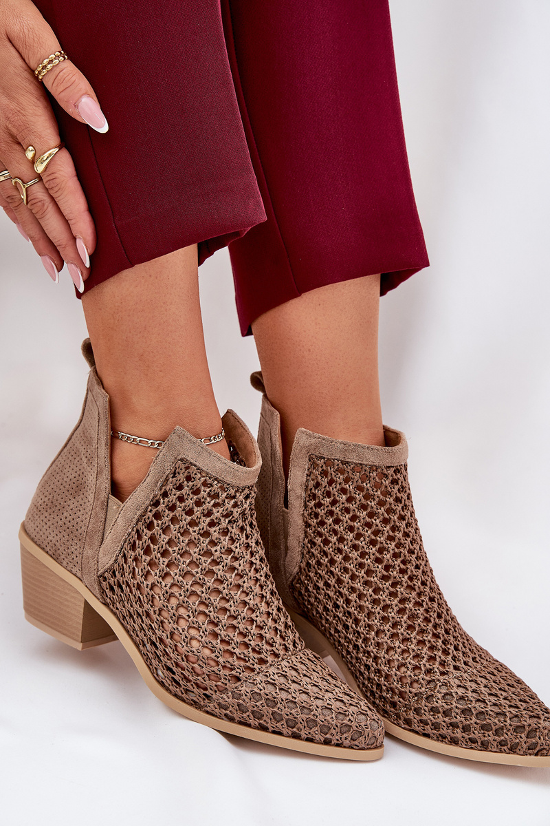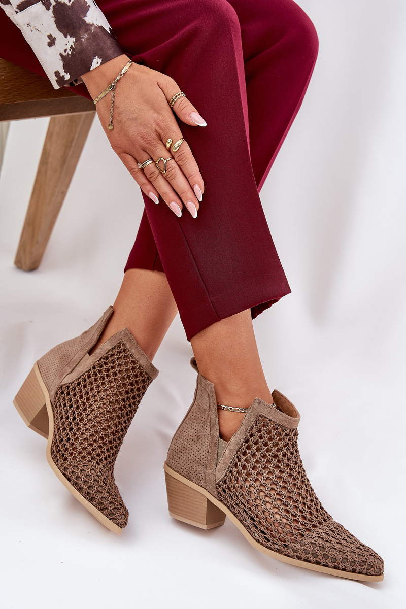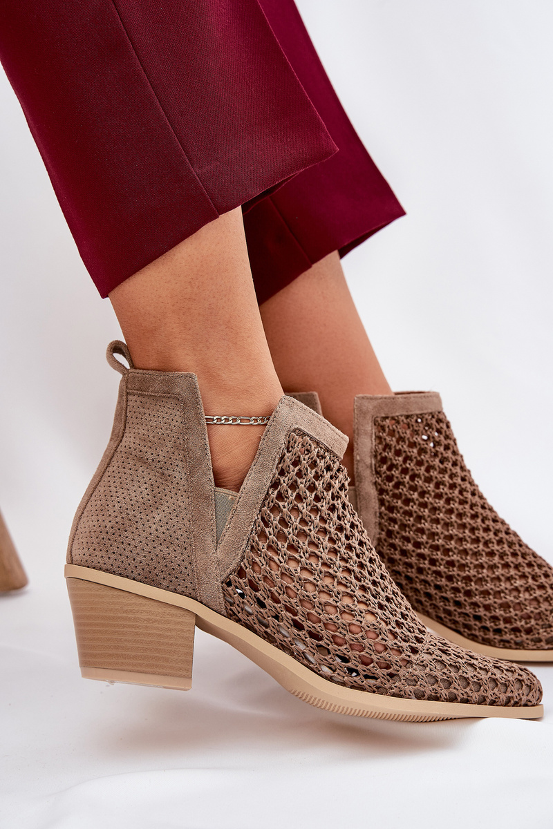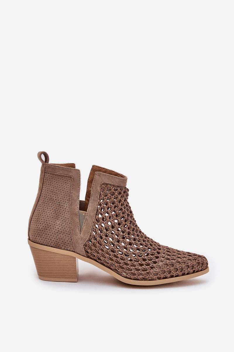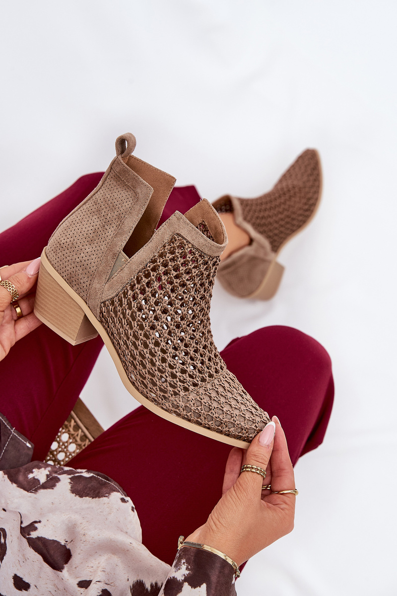 Dámske Ažúrové Čižmy Na Opätku S Výrezmi A Pletením Khaki Tulifedi