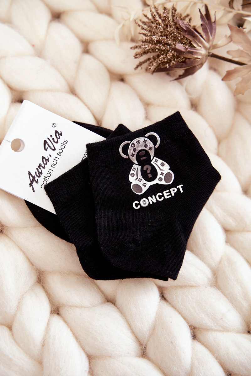 Dámske bavlnené ponožky so strieborným medvedíkom čiernou farbou