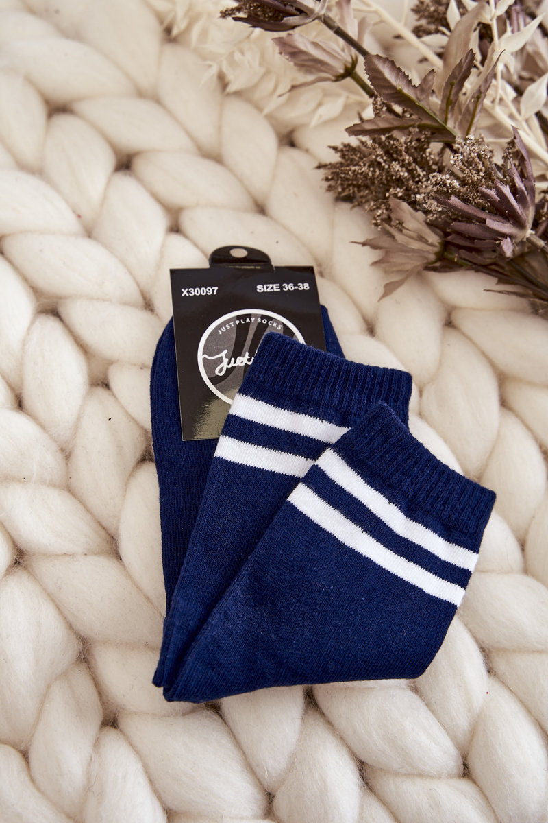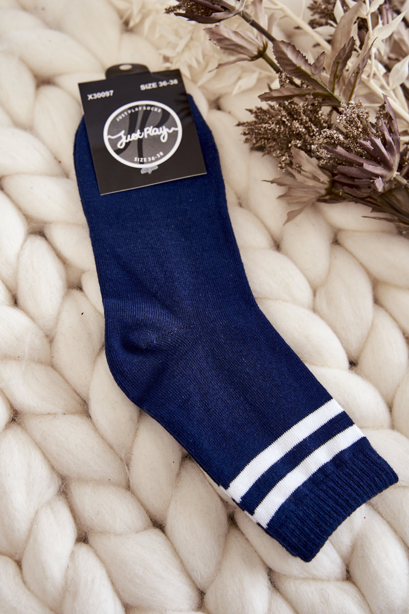 Dámske bavlnené športové ponožky s námorníckymi modrými pruhmi