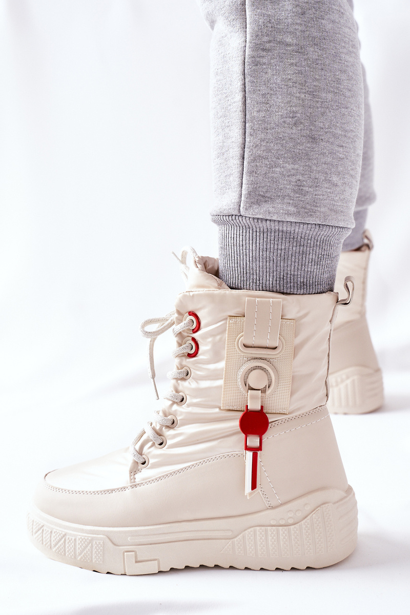 Dámske izolované snehové topánky vyrobené z ekologickej kože. Šnurovaný a zips. Ideálne pre zimu.