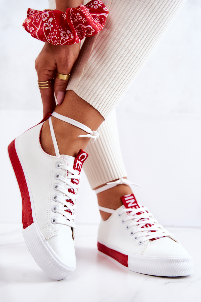 Dámske tenisky vyrobené z ekologickej kože. Klasický model zodpovedá mnohým štýlom pre obe nohavice, šaty alebo dlhšie sukne. Topánky sa dobre prispôsobujú tvaru chodidla. Majú mäkkú, materiálovú vložku. Klasicky zviazaný model. Topánky majú podrážku. Pri výbere veľkosti navrhnite tabuľku veľkosti.