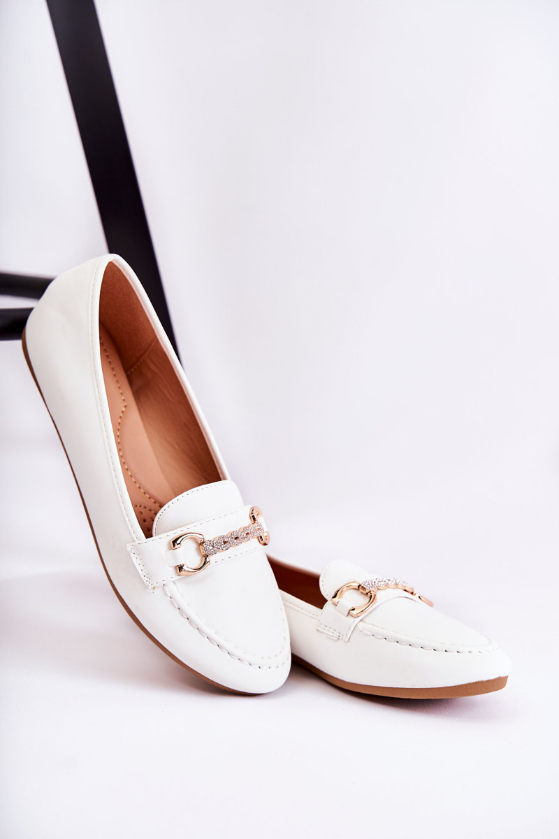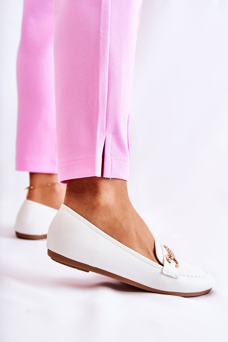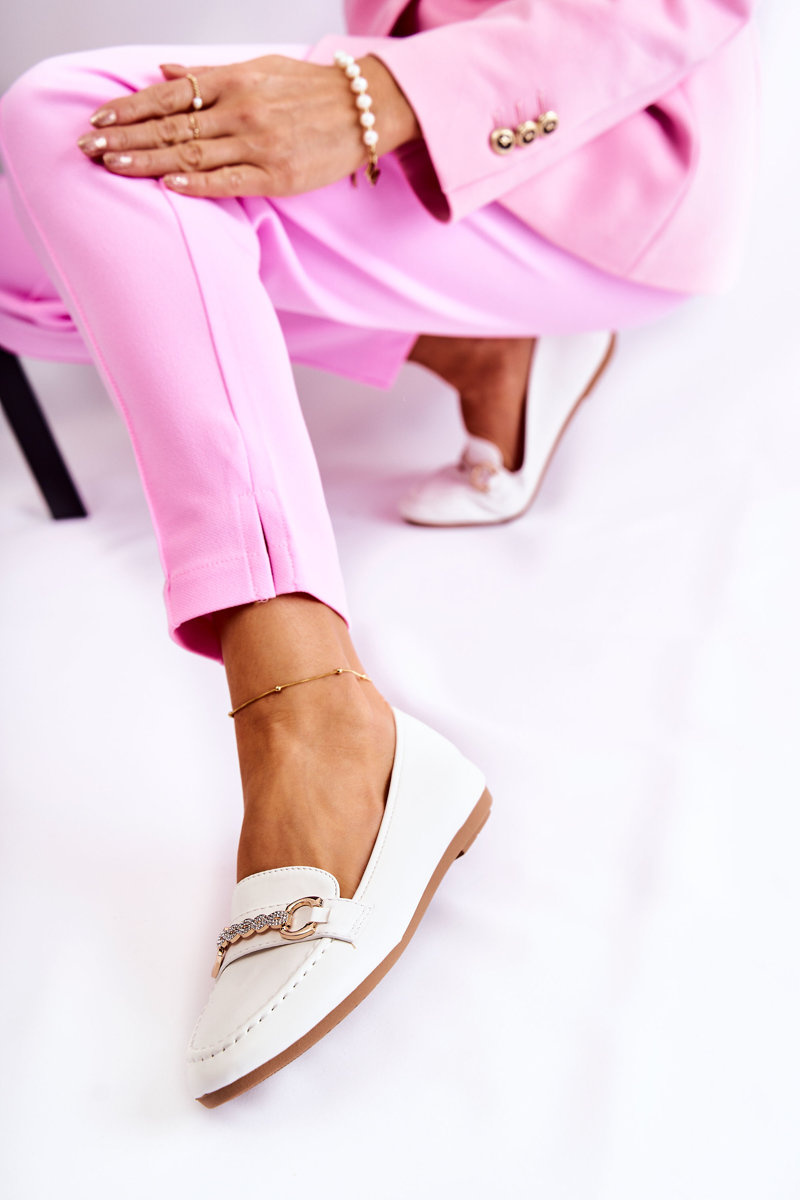 Elegantné ploché mokasíry. Boli vyrobené z vysoko kvalitnej ekologickej kože s ohľadom na všetky detaily. Mäkká perforačná vložka sa počas používania postará o vaše pohodlie. Moccasíny budú pracovať v mnohých štýloch. Na prednej strane je dekoratívny prvok s kamienkami napodobňujúcimi kamienky. Zaoblený nos. Pri výbere veľkosti navrhnite tabuľku veľkosti.