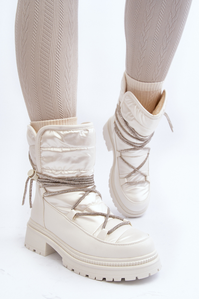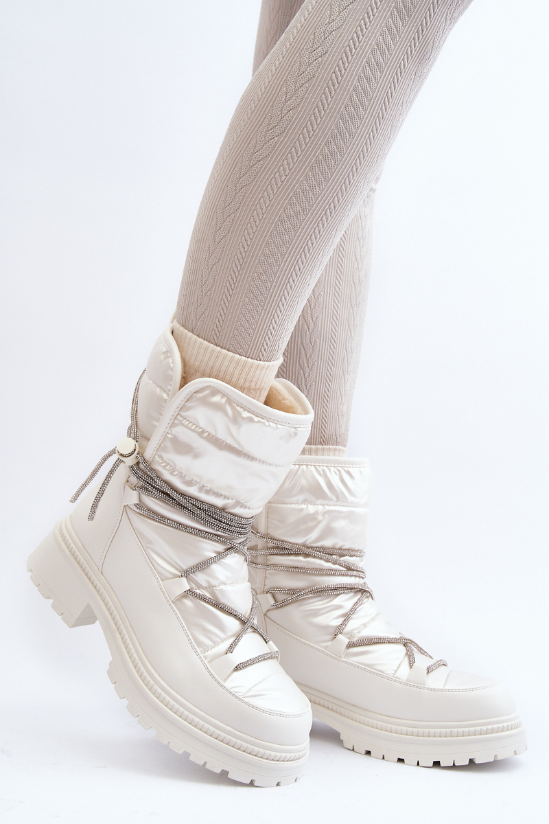 Dámske snehule vyrobené z materiálov, ktoré účinne chránia pred zimou. Osadené na hrubej podrážke a plochom opätku. Chrbát zdobený lesklým viazaním. Model na zasúvanie. Zaoblené špičky. Vnútro zateplené hrubým kožušinou. Okrem toho je pätka zpevnená. Určite by ste ich mali mať! Při výběru velikosti se řiďte tabulkou velikostí.