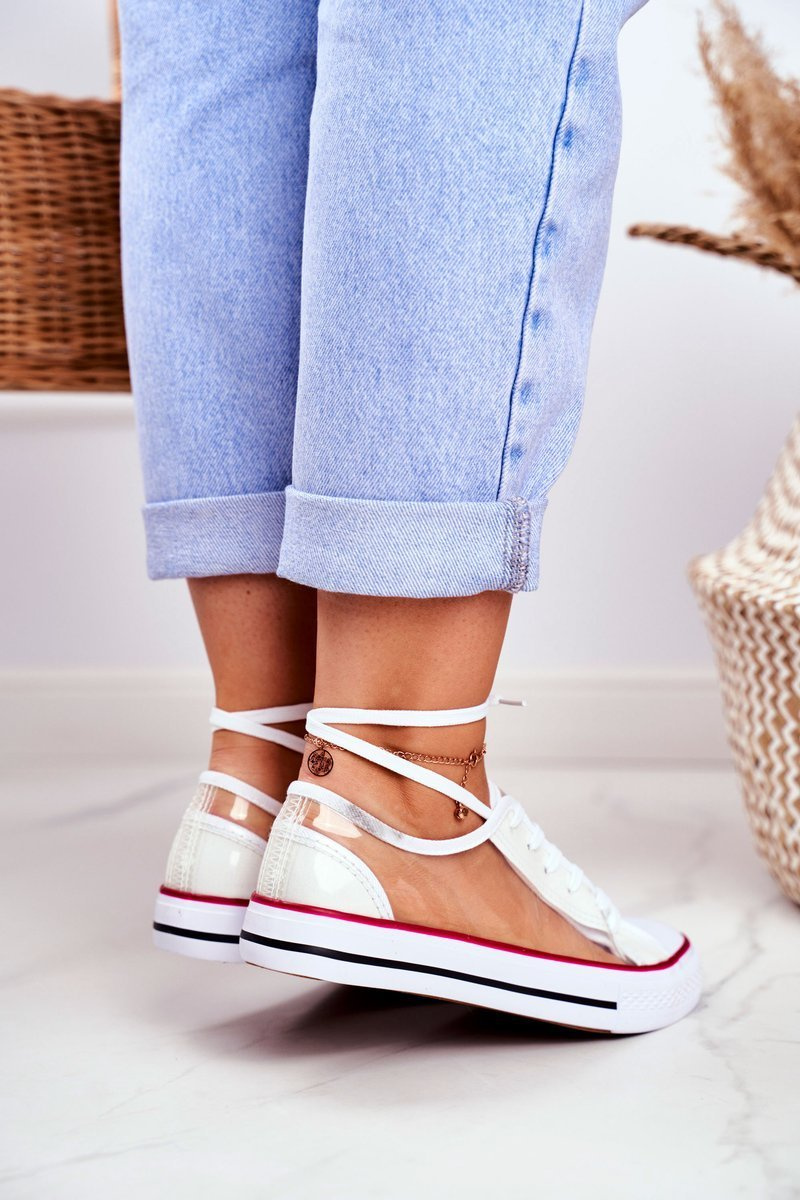 Získate minimalizmus a klasické tenisky? Nechcete nosiť rovnaké topánky ako všetci ostatní? Vyberte si naše tenisky s priehľadnými prvkami a nechajte si všimnúť v dave! Červená škrupina na podrážke robí topánky ženskejšie a zmyselnejšie. Tenisky sa doslova zmestia na každú štylizáciu! Môžu sa dať na nohavice aj na šaty a cítiť sa pohodlne v univerzálnej športovej obuvi. Podrážka traktora zabezpečí stabilitu na akomkoľvek povrchu. Pri výbere veľkosti postupujte podľa tabuľky veľkosti.