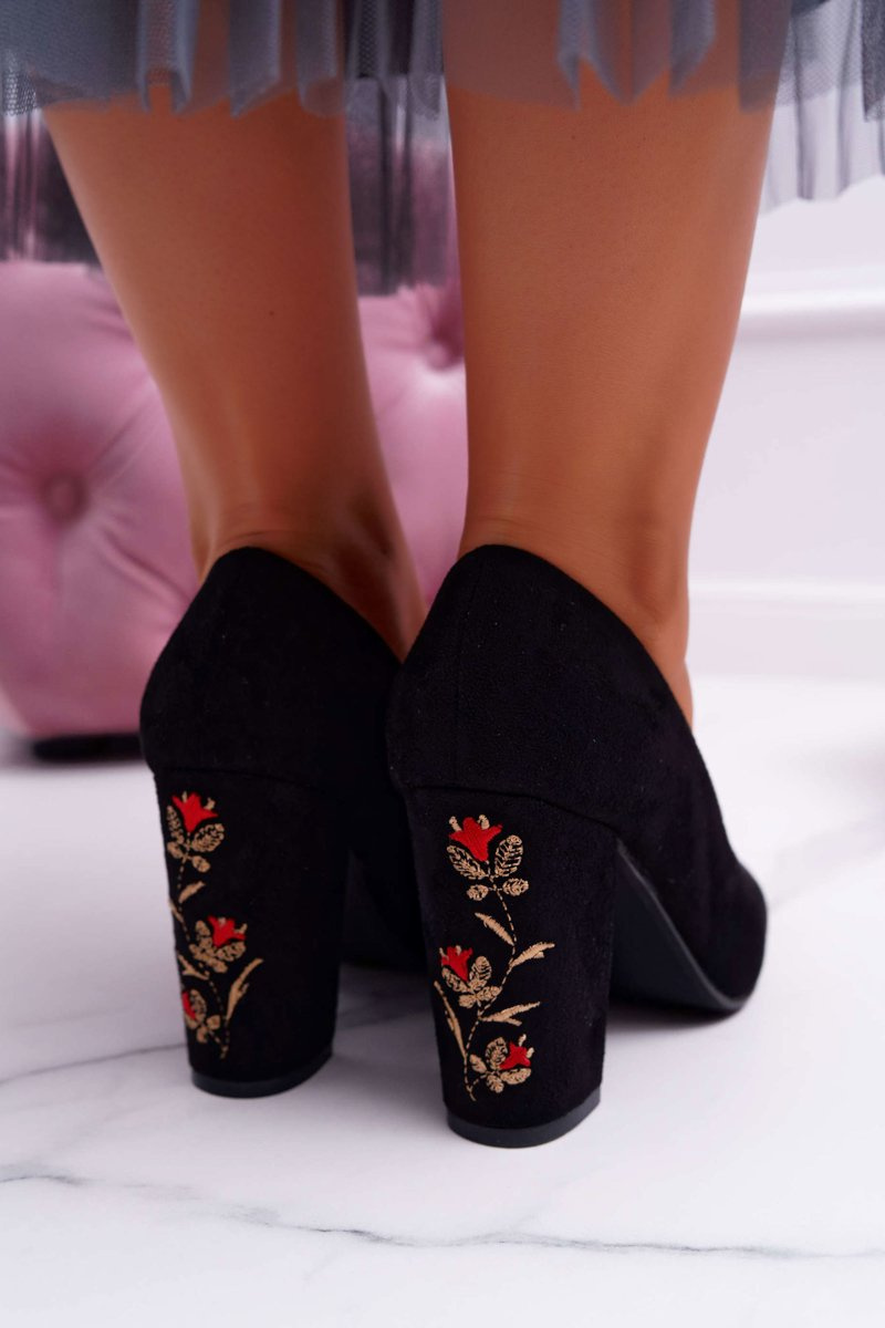 Dámske čerpadlá Sergio Leone Black Suede Gendar Flowers