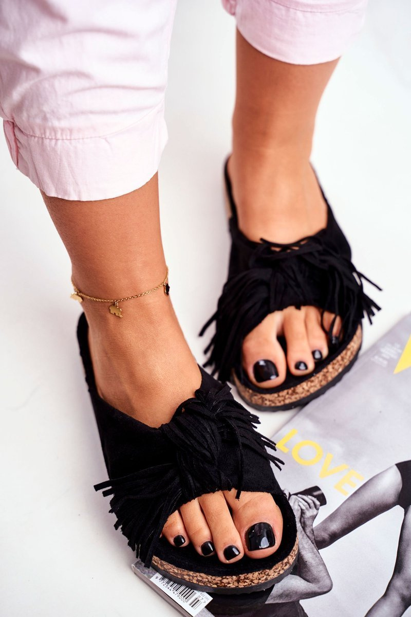 Dámske perfektné papuče na leto! Budú zladiť šaty aj nohavice. Mäkká a profilovaná vložka poskytuje neuveriteľné pohodlie a pohodlie použitia. Žabky majú krásne dekorácie vo forme viazaného luku so zavesenými strapcami. Prichádzajú v niekoľkých nádherných farbách. Musíte ich mať, skontrolujte všetky farby!