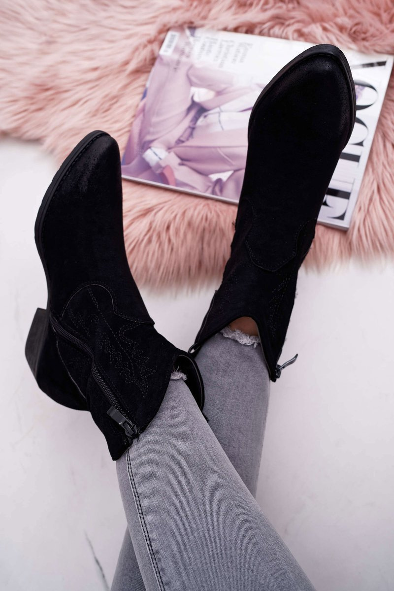 Neobvyklý a štýlový model bootovania! Vyrobené z ekologického semišu. Kovbojský dizajn dáva originalitu. Zips. Interiér je pokrytý jemnou obuvou prikrývkou. Nezabudnite skontrolovať celú našu zbierku topánok za skvelé ceny!