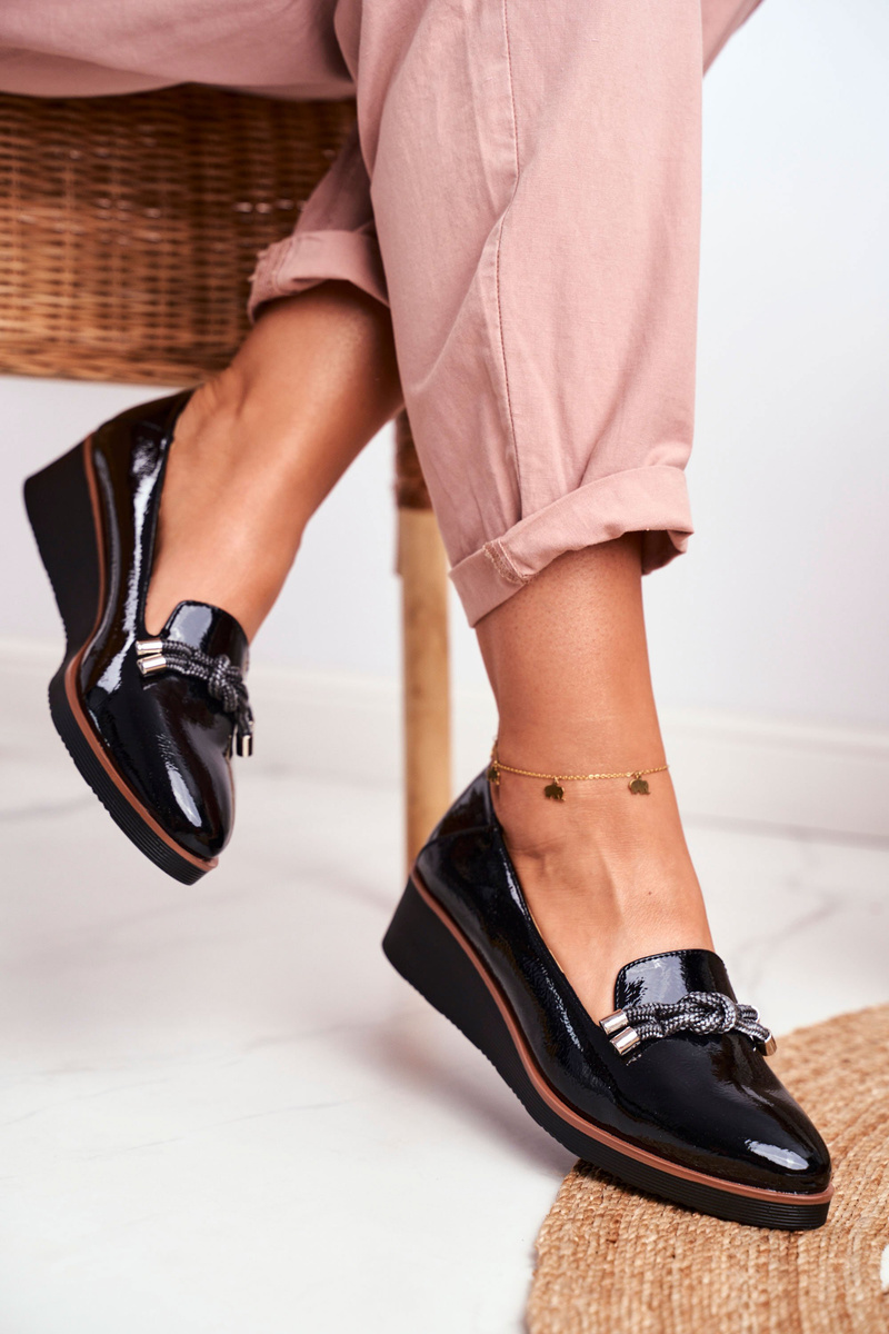 Dámske čierne mokasíry lakované na staroveku Abba Wedge