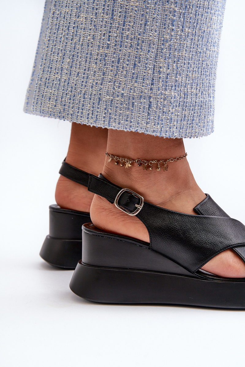 Dámske čierne sandále z ekokože na platforme a klíne Vaiara