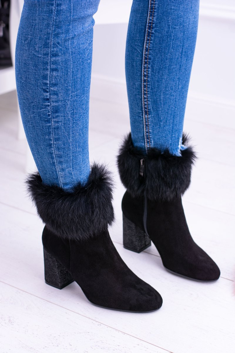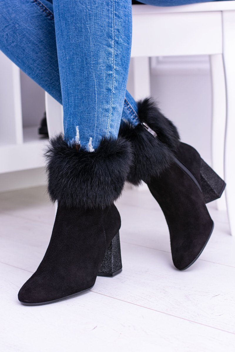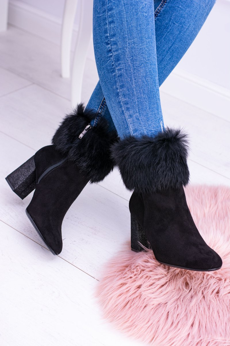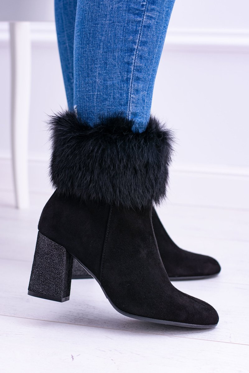 Skóra naturalna - labeltak Towar wprowadzony przed 13.12.2024Tak Dámske čierne semišové topánky s kožušinou Laury Messi 1689