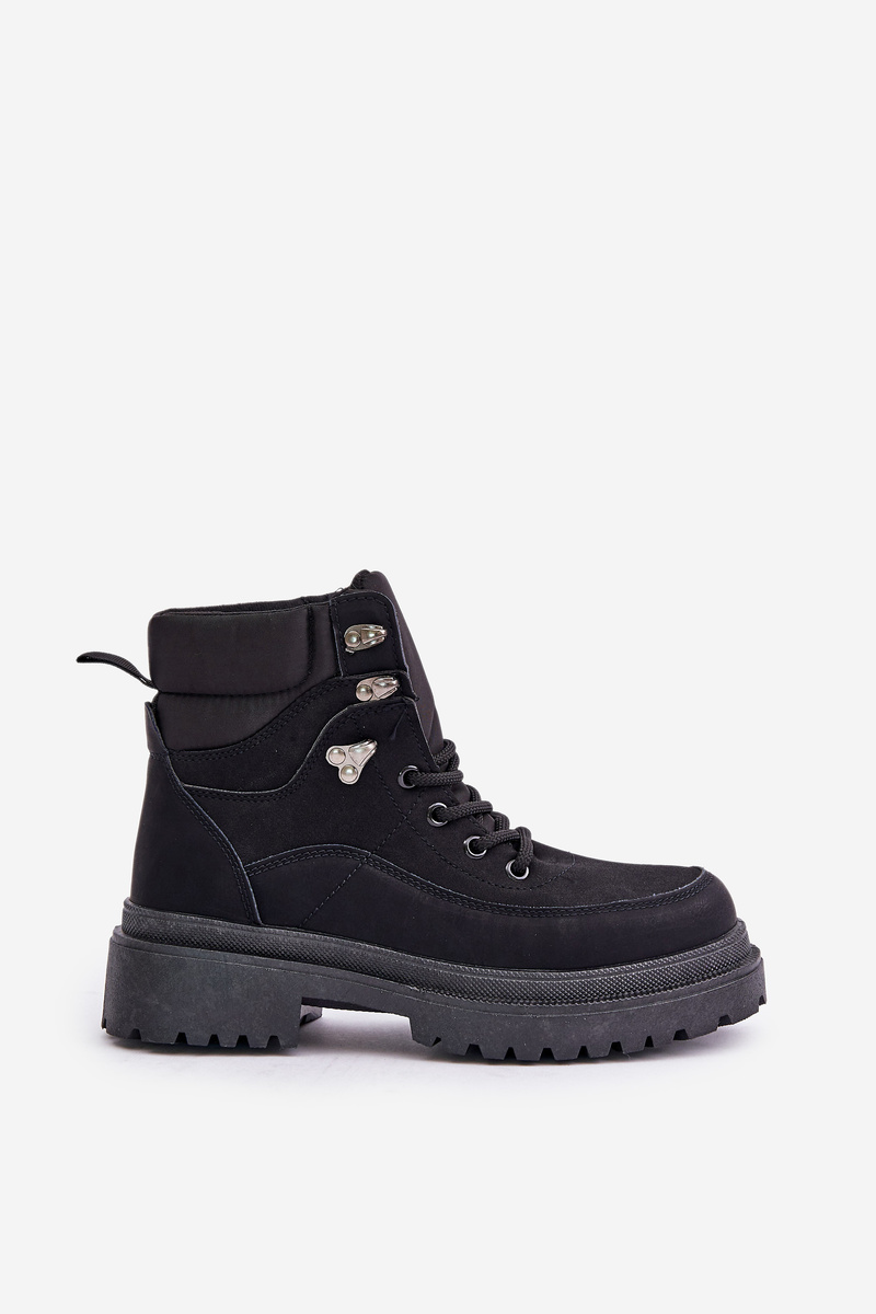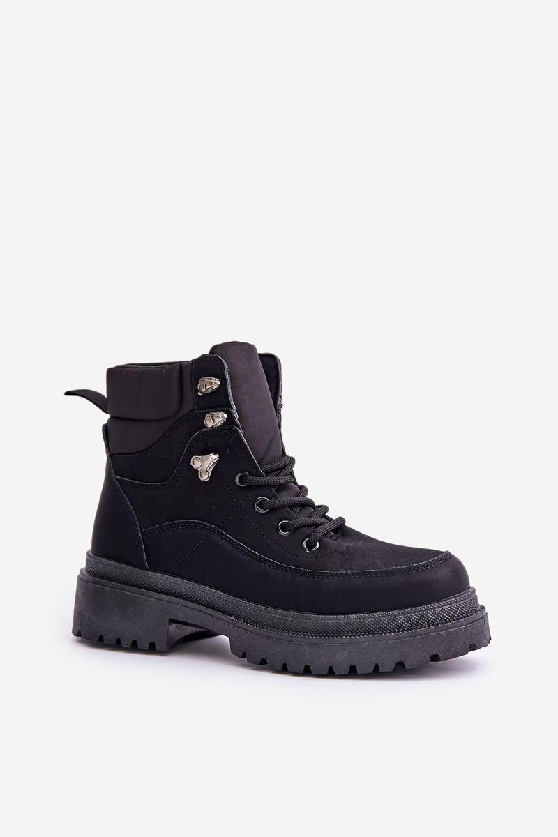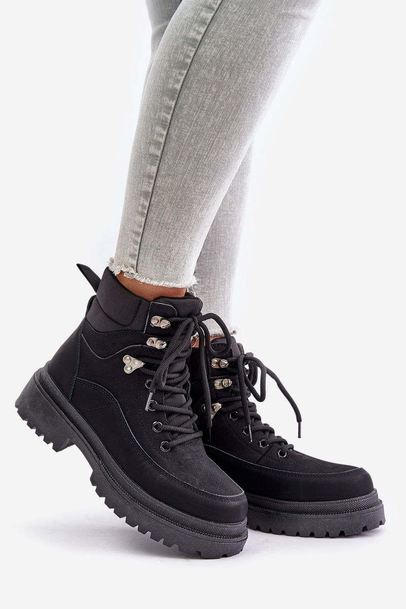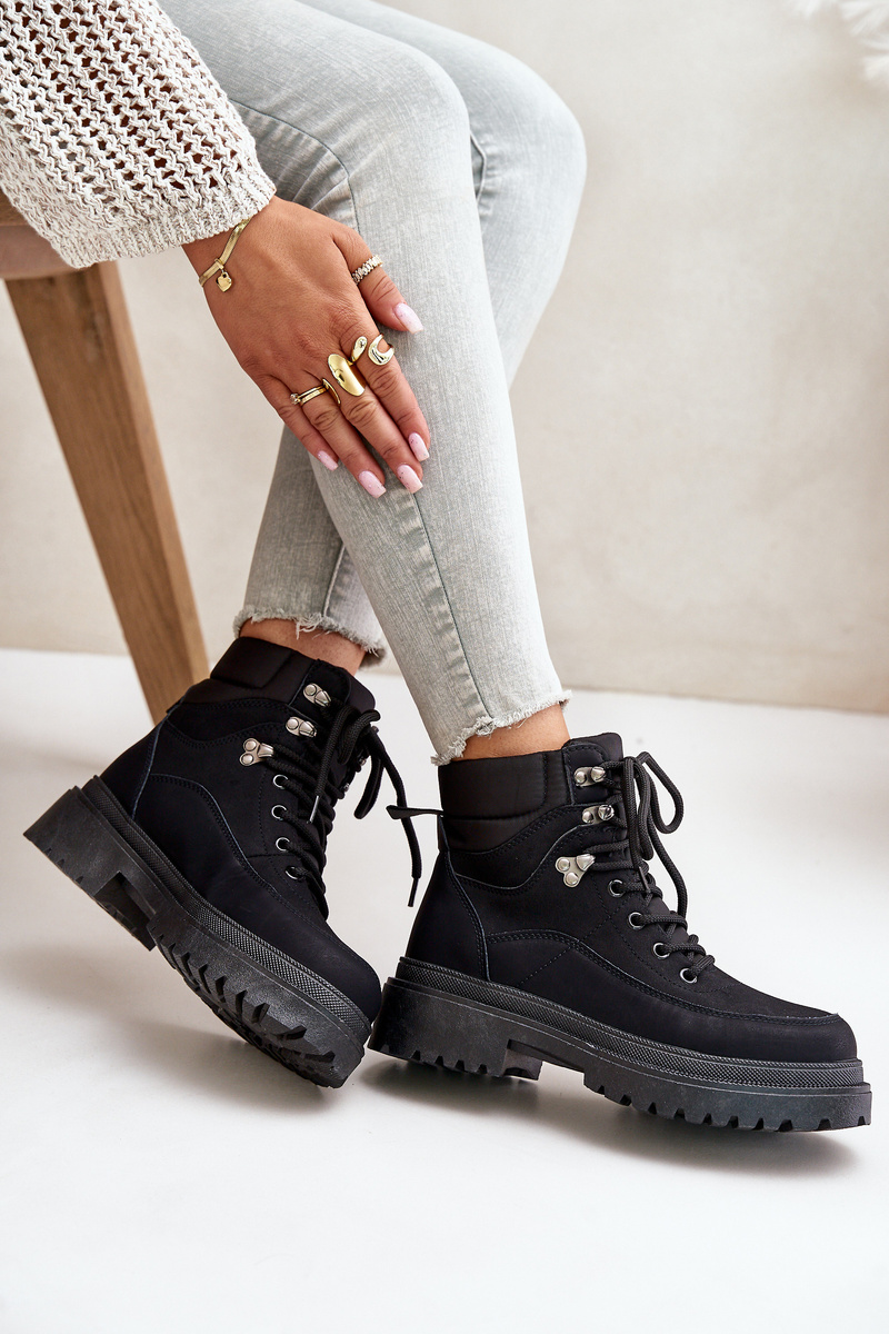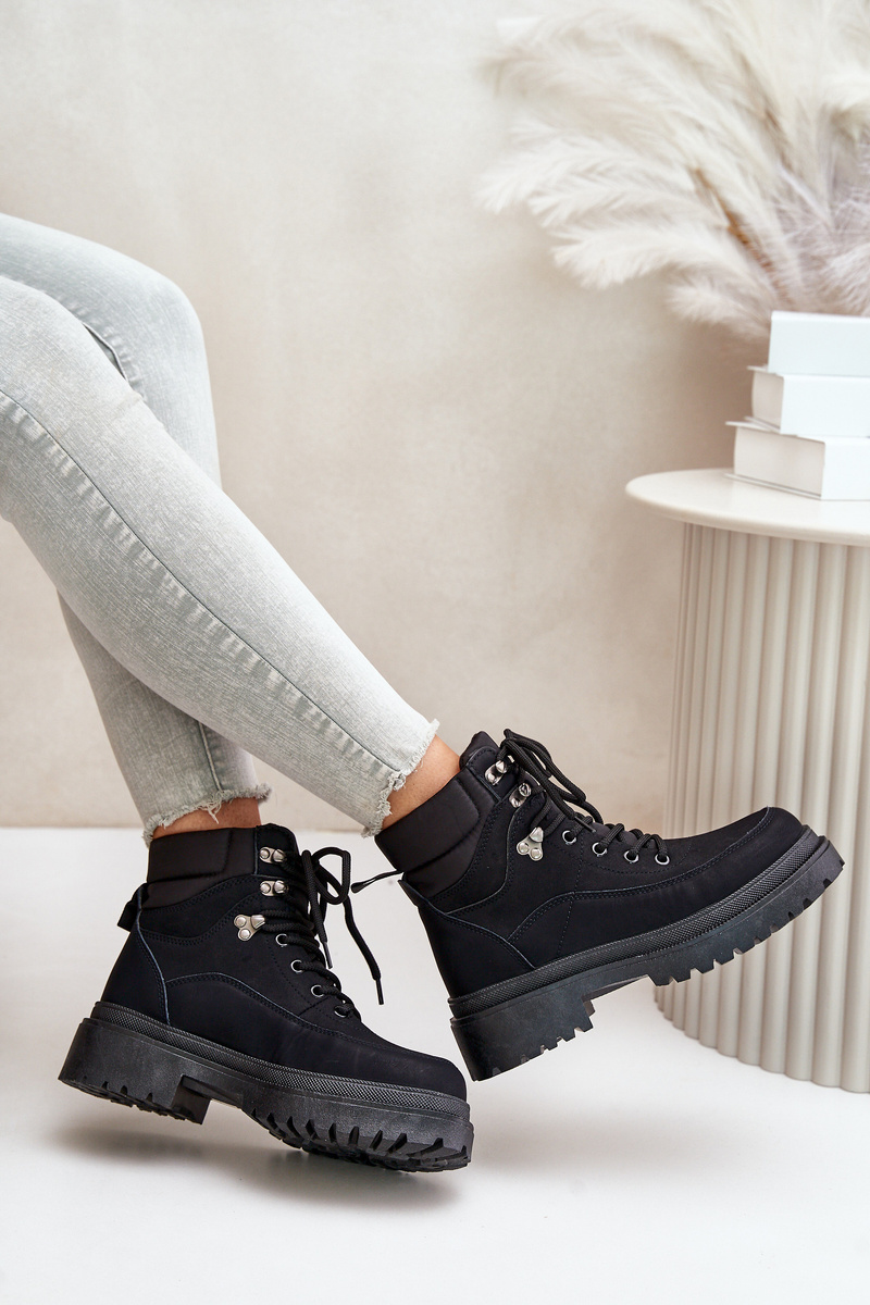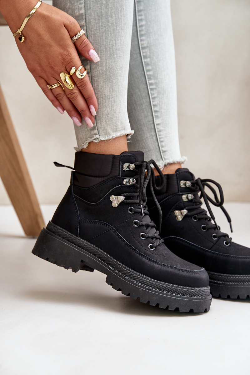 Dámske kotníkové topánky vyrobené z eko kože, umiestnené na platforme a plochom podpätku. Zaoblené špičky. Model na šnurovanie. Vnútro je zateplené obuvníckou vlnou, čo zabezpečuje teplo v chladnejších dňoch. Ideálne na každodenné prechádzky alebo víkendové výlety! Při výběru velikosti se řiďte tabulkou velikostí.