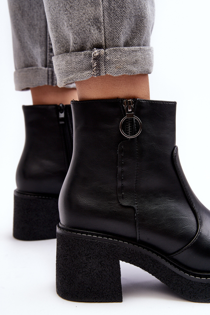Dámske topánky zabudované na masívnej päte a platforme. Vyrobené z ekologickej kože. Pripevnený posúvačom na boku. Agent izoloval peknú kožušinu. Zaoblené prsty na nohách. Horná časť zdobená šitím a ďalším krátkym posúvačom. Päta je stuhnutá. Pri výbere veľkosti postupujte podľa tabuľky veľkosti