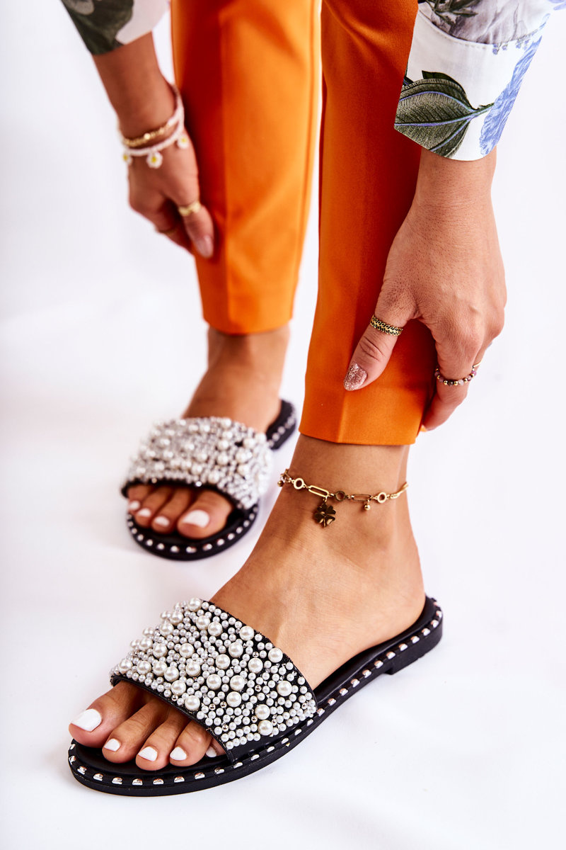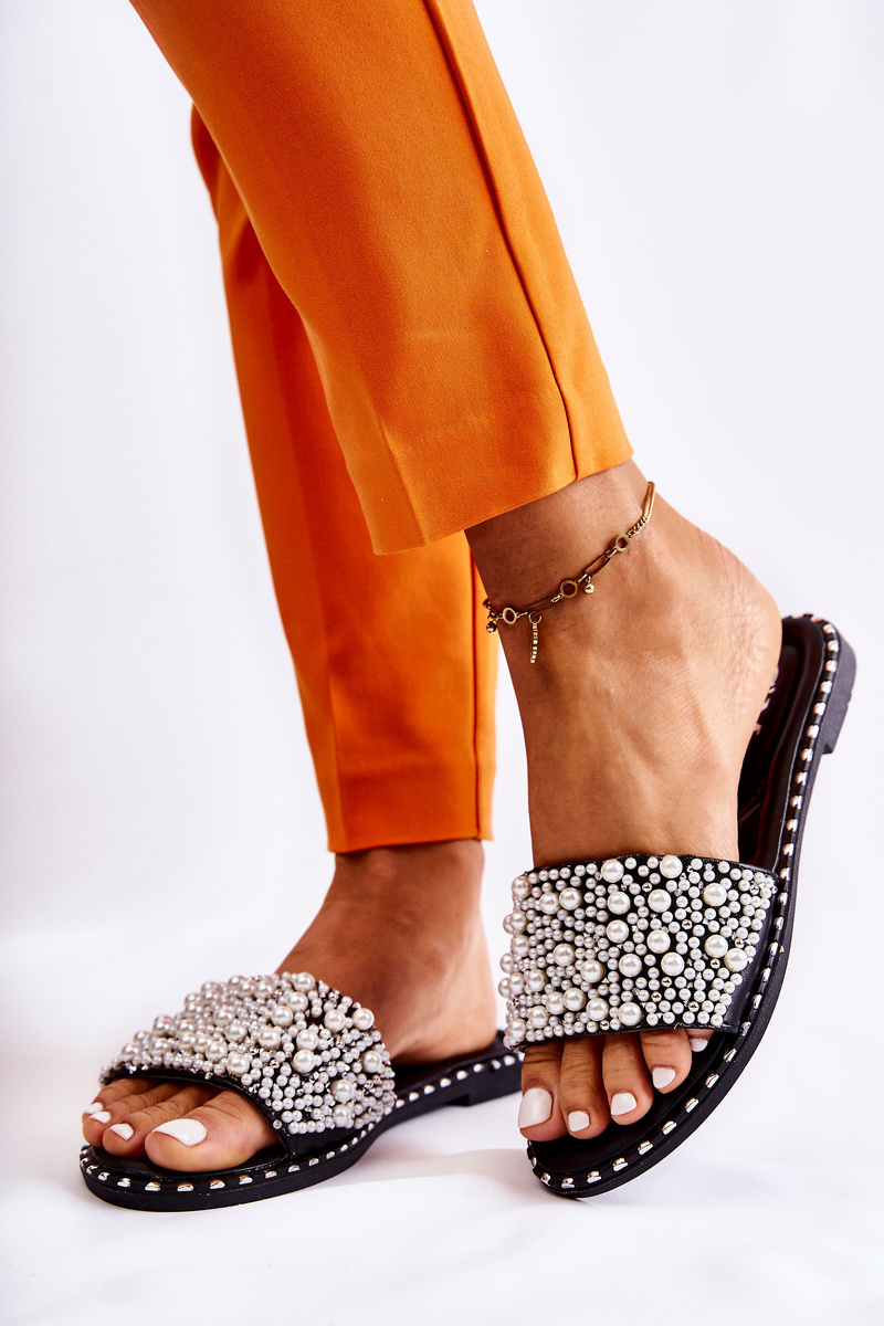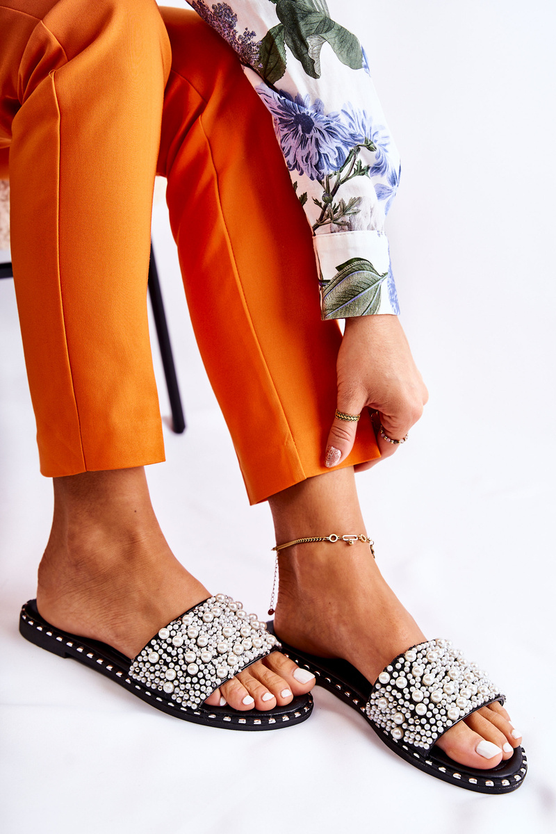 Elegantné ženské žabky z ekologickej kože. Majú dekorácie na prednom pásme vo forme napodobňujúcich perly a zirkónia. Flip -flops majú okolo chodidla dekoratívne cvočky. Mäkká vložka vyrobená z ekologickej kože, ktorá je navyše prešívaná. Nos objavený, zaoblený. Ploché vložené. Podrážka je vyrobená z gumového plastu, ktorý je dodatočne nekĺzavý. Pevný model, ideálny pre letné dni! Pri výbere veľkosti navrhnite tabuľku veľkosti. p>