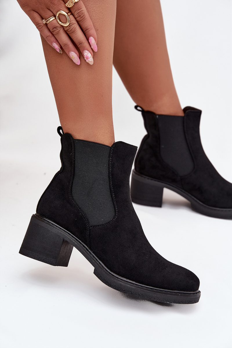 Dámske čižmy Chelsea na blokovom podpätku čierne Luvina