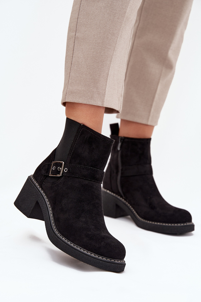 Dámske čižmy na kocku s prackou Čierne Nymera