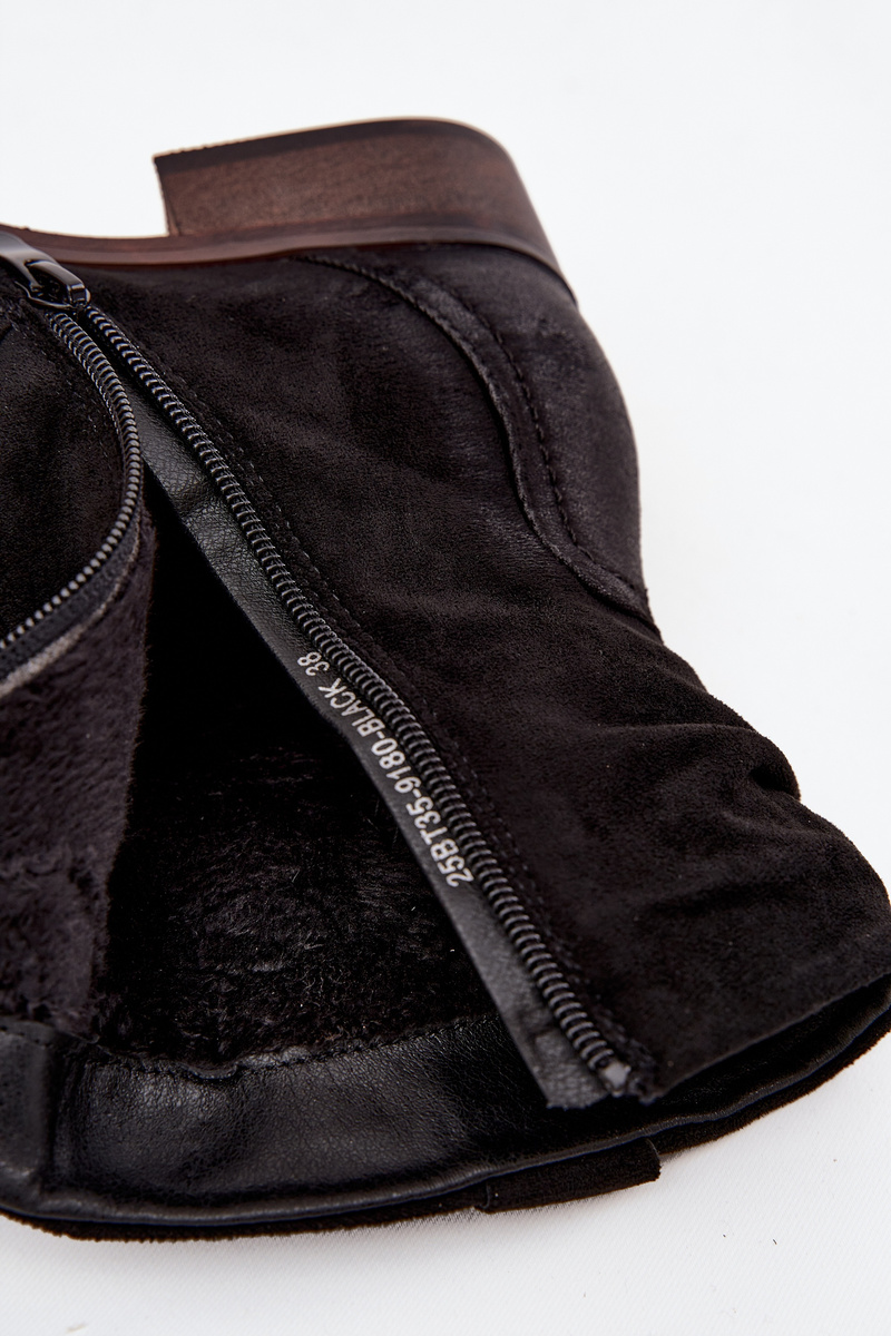 Dámske čižmy na nízkom podpätku s mačkaním vyhriate čierne Gracia