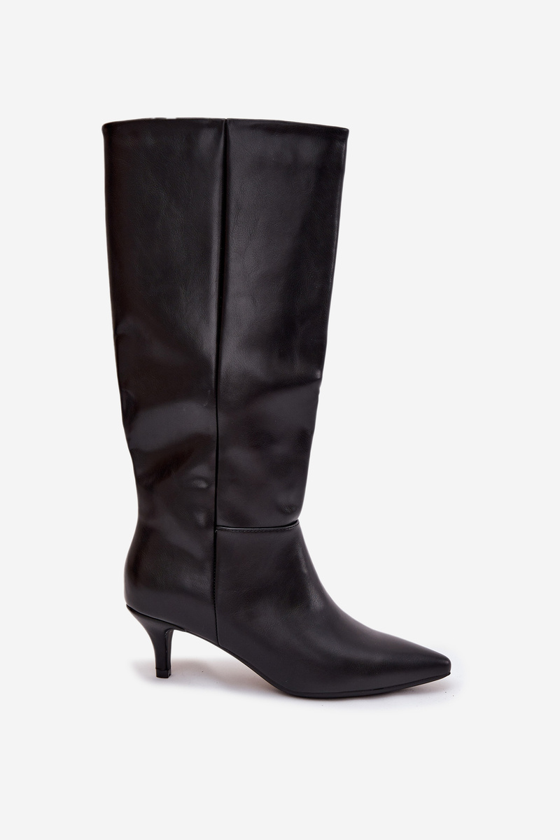 Dámske čižmy na nízkom podpätku s vyteplenou ekokožou čierne Marcellia