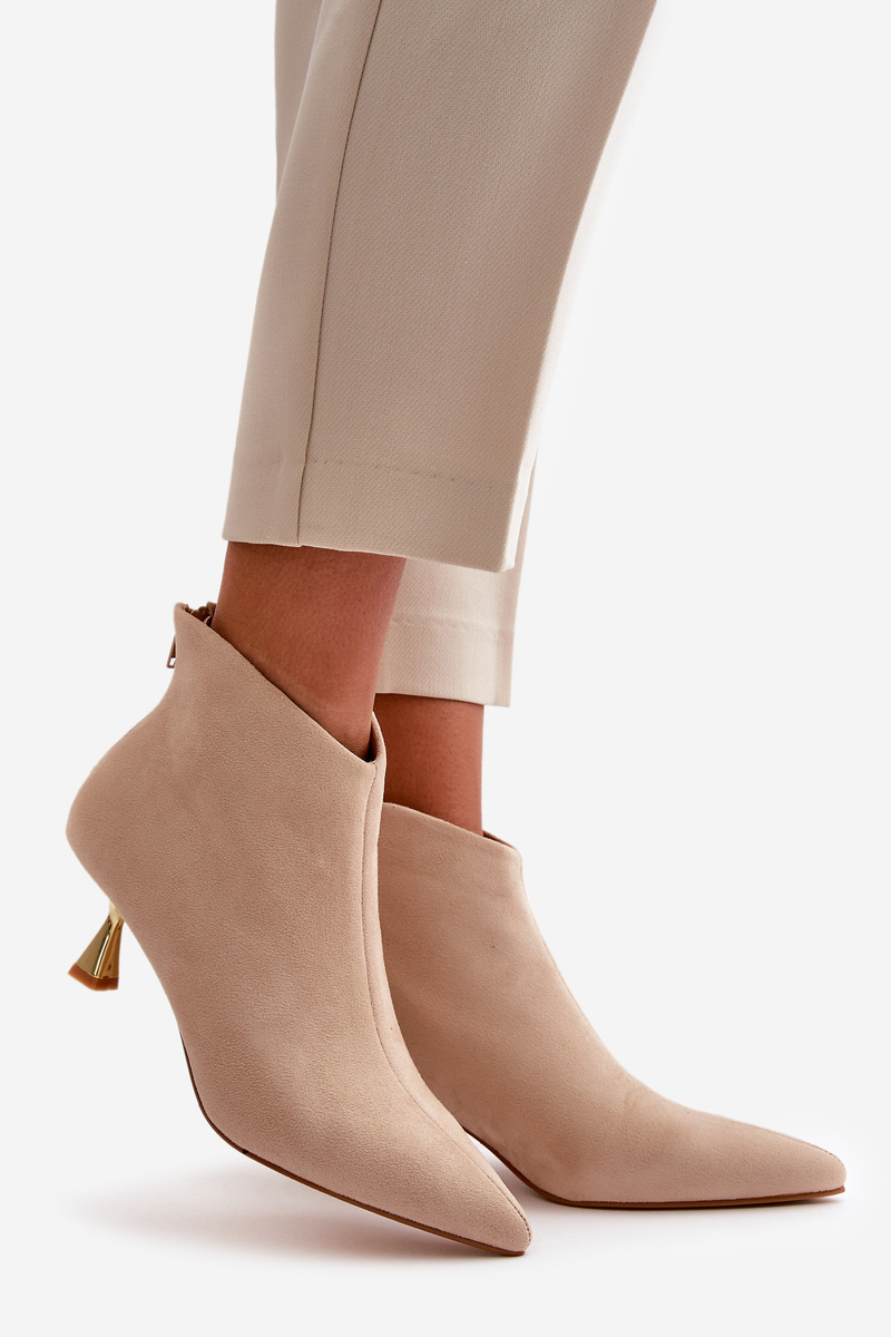 Dámske Čižmy Na Opätku Eko Semišové Béžové Terlena