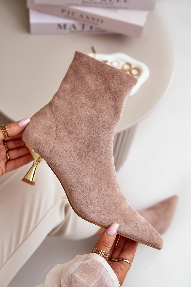 Dámske Čižmy Na Opätku Eko Semišové S Špicatými Nosmi Béžové Irithare