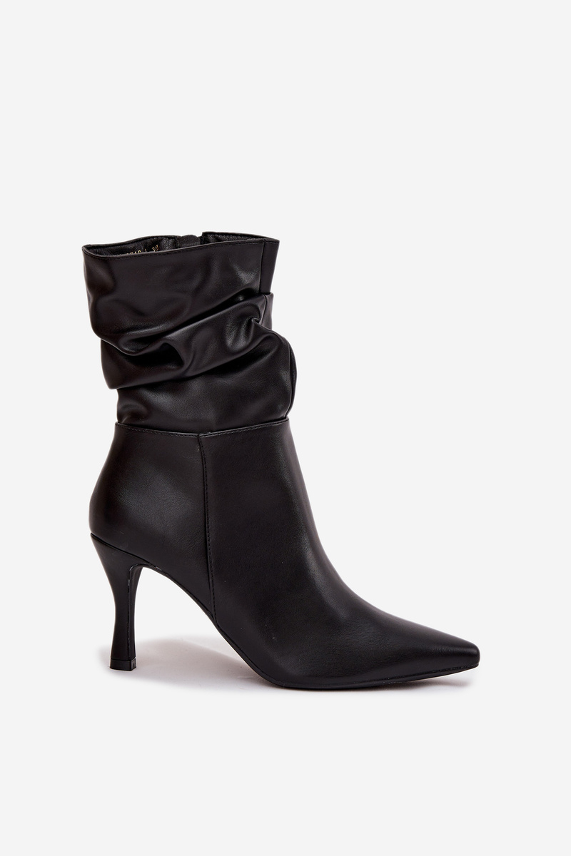 Dámske čižmy na opätku s nariaseným horným dielom zips čierne Ulisse