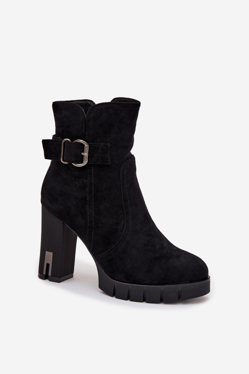 Dámske členkové topánky vyrobené z ekologickej semiše. Umiestnené na stabilnom kockatom podpätku, ktorý jemne predlžuje siluetu a zároveň zabezpečuje pohodlné nosenie. Bočný zips uľahčuje obúvanie a vyzúvanie, a pásik s prackou pridáva celku módny, štýlový akcent. Univerzálne a nadčasové – skvele sa hodia na každodenné outfity aj na elegantnejšie kombinácie. Pri výbere veľkosti sa riaďte tabuľkou veľkostí. Při výběru velikosti se řiďte tabulkou velikostí.