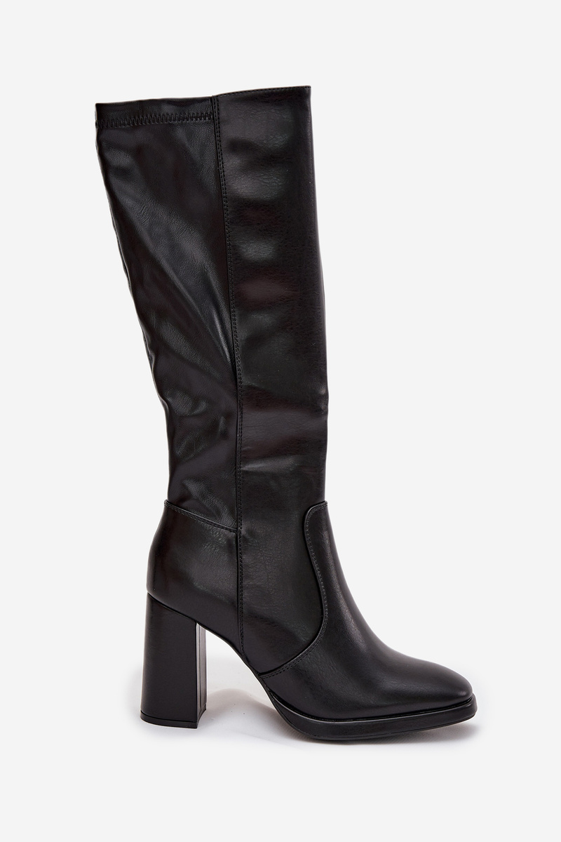 Dámske čižmy na opätku z eko kože zateplené čierne Lyvella