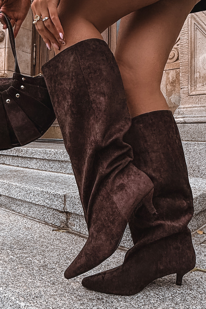 Dámske čižmy na opätku z eko semišu čokoládové Pheona