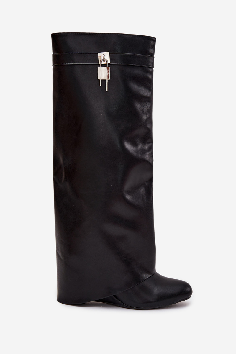 Dámske čižmy na platforme s pásikom a strieborným detailom Eko koža Čierne Korivelle