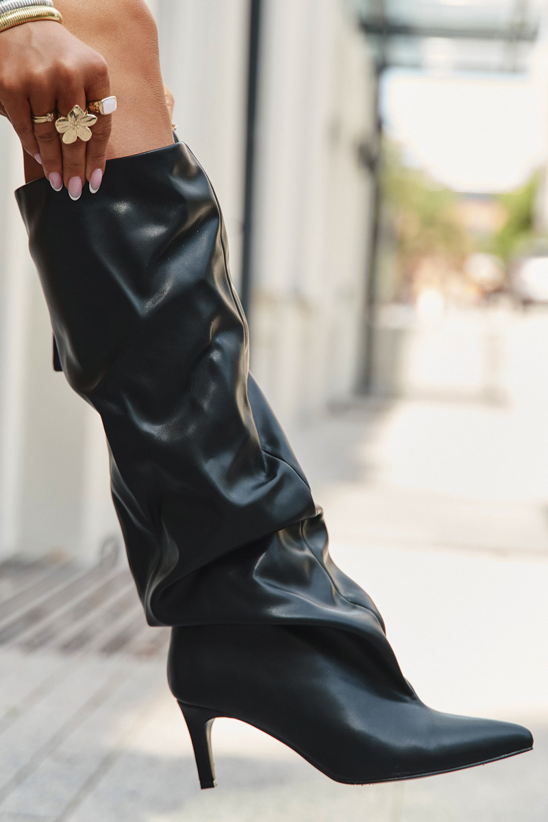 Dámske čižmy na podpätku na slip-on s riasením Čierne Rosivine