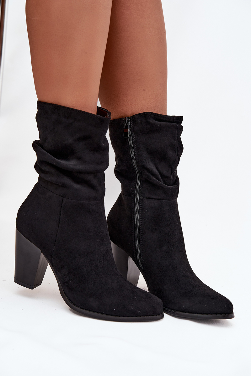 Dámske čižmy na podpätku s riasením Čierne Jovessa