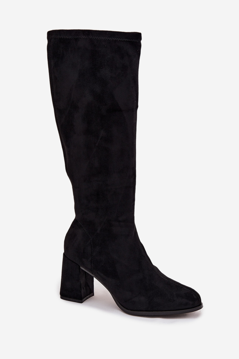 Dámske čižmy na podpätku z eko semišu čierne Yelisse