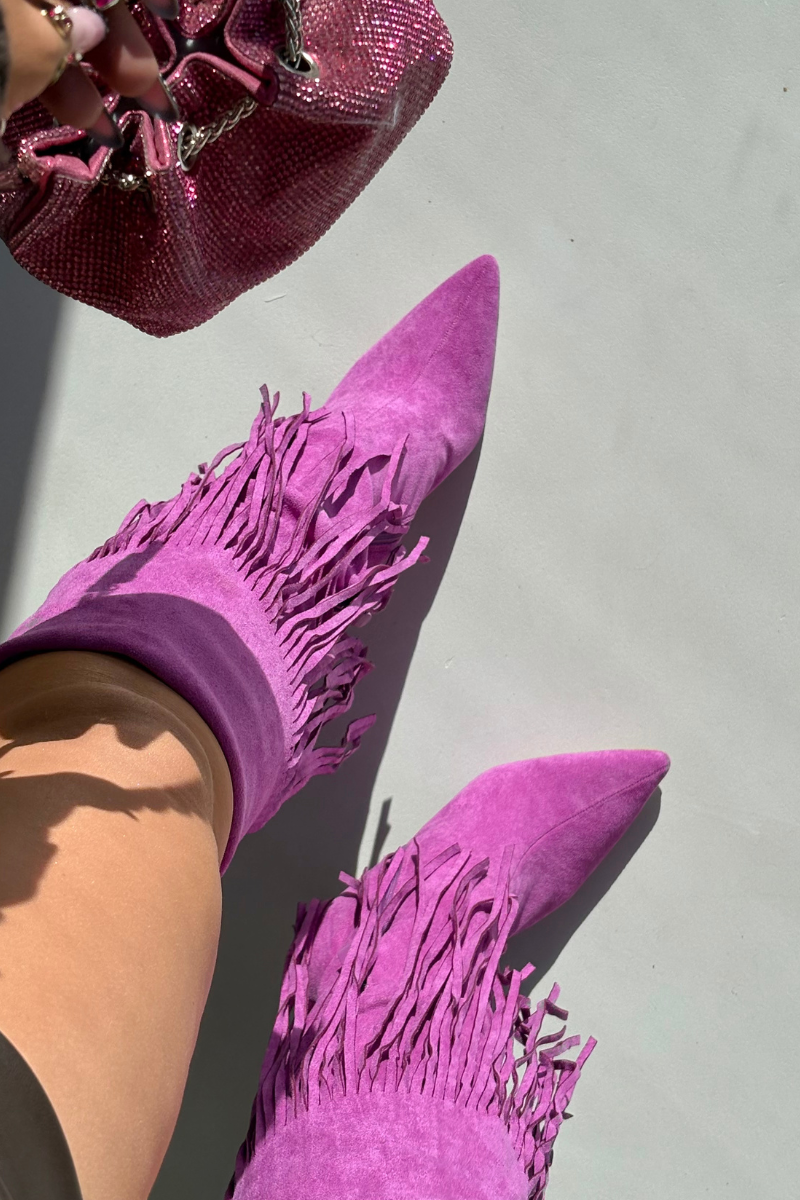 Dámske čižmy na vysokom podpätku s strapcami fialové Isalune
