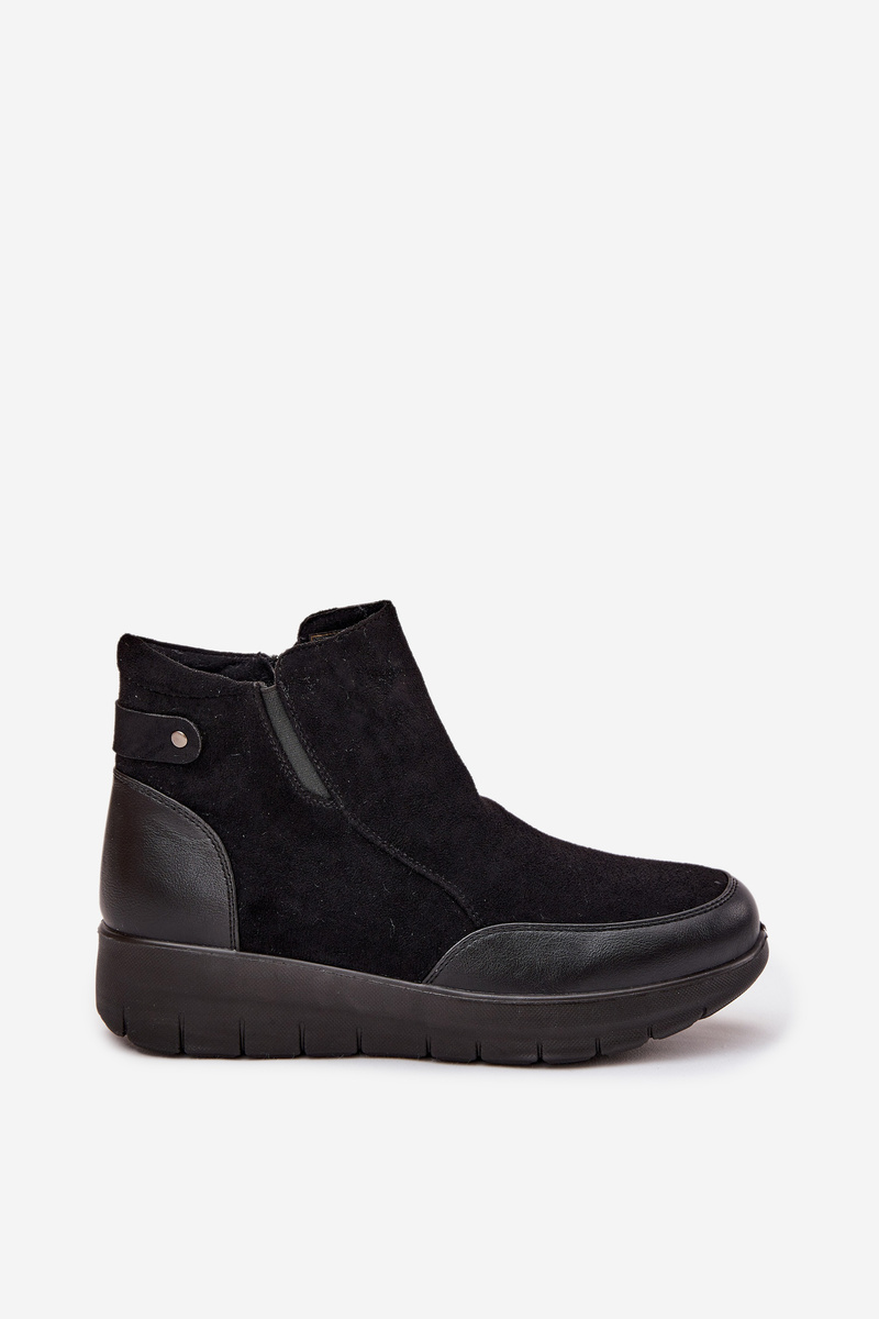 Dámske členkové topánky vyrobené z kombinácie ekologického semišu a ekologickej kože. Model je osadený na platforme, čo zabezpečuje pohodlie a stabilitu pri chôdzi. Vnútro je vyložené hrubým kožušinovým materiálom, ktorý účinne chráni pred chladom a zaručuje komfort v mrazivých dňoch. Zaoblené špičky dodávajú celkovému vzhľadu klasický štýl a praktické zapínanie na zips uľahčuje obúvanie a vyzúvanie. Tieto topánky sú ideálne na každodenné nosenie, pričom ponúkajú teplo, pohodlie a módny štýl v jesennom a zimnom období. Pri výbere veľkosti sa riaďte tabuľkou veľkostí. Při výběru velikosti se řiďte tabulkou velikostí.