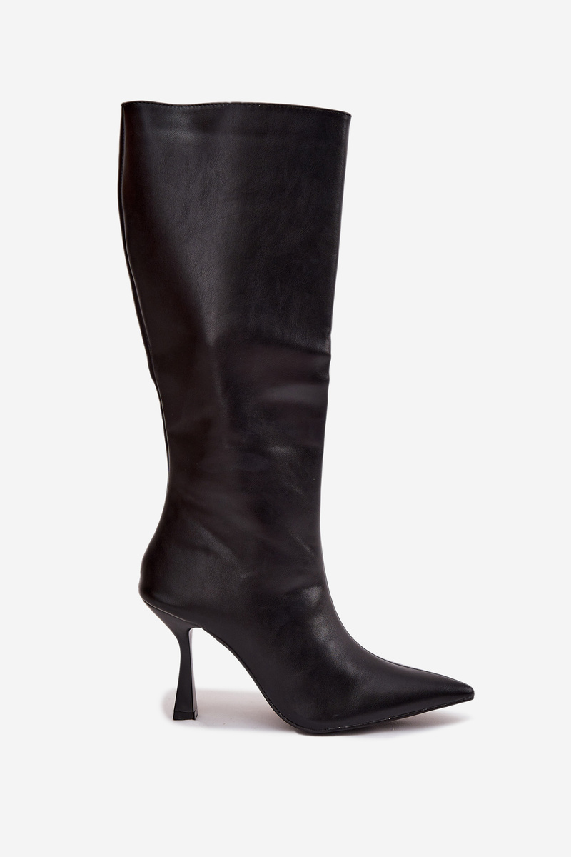 Dámske čižmy z ekologickej kože s klasickým, elegantným strihom. Model so špicatými špičkami a vysokým podpätkom v tvare ihly zoštíhľuje postavu, zatiaľ čo vysoký oblek na koleno zdôrazňuje nohy. Bočný zips uľahčuje rýchle obúvanie a dokonale prispôsobenie k nohám, ideálne na večerné výlety a elegantné príležitosti. Pri výbere veľkosti sa riaďte tabuľkou veľkostí. Při výběru velikosti se řiďte tabulkou velikostí.