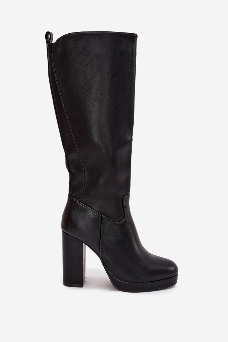 Dámske Čižmy Po Kolena Na Opätku Eko Koža Čierne Thalina