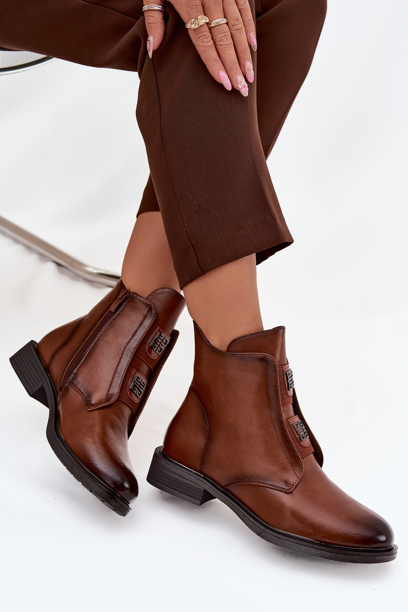 Dámske čižmy s izoláciou na nízkom podpätku s ozdobami hnedé Tavressa