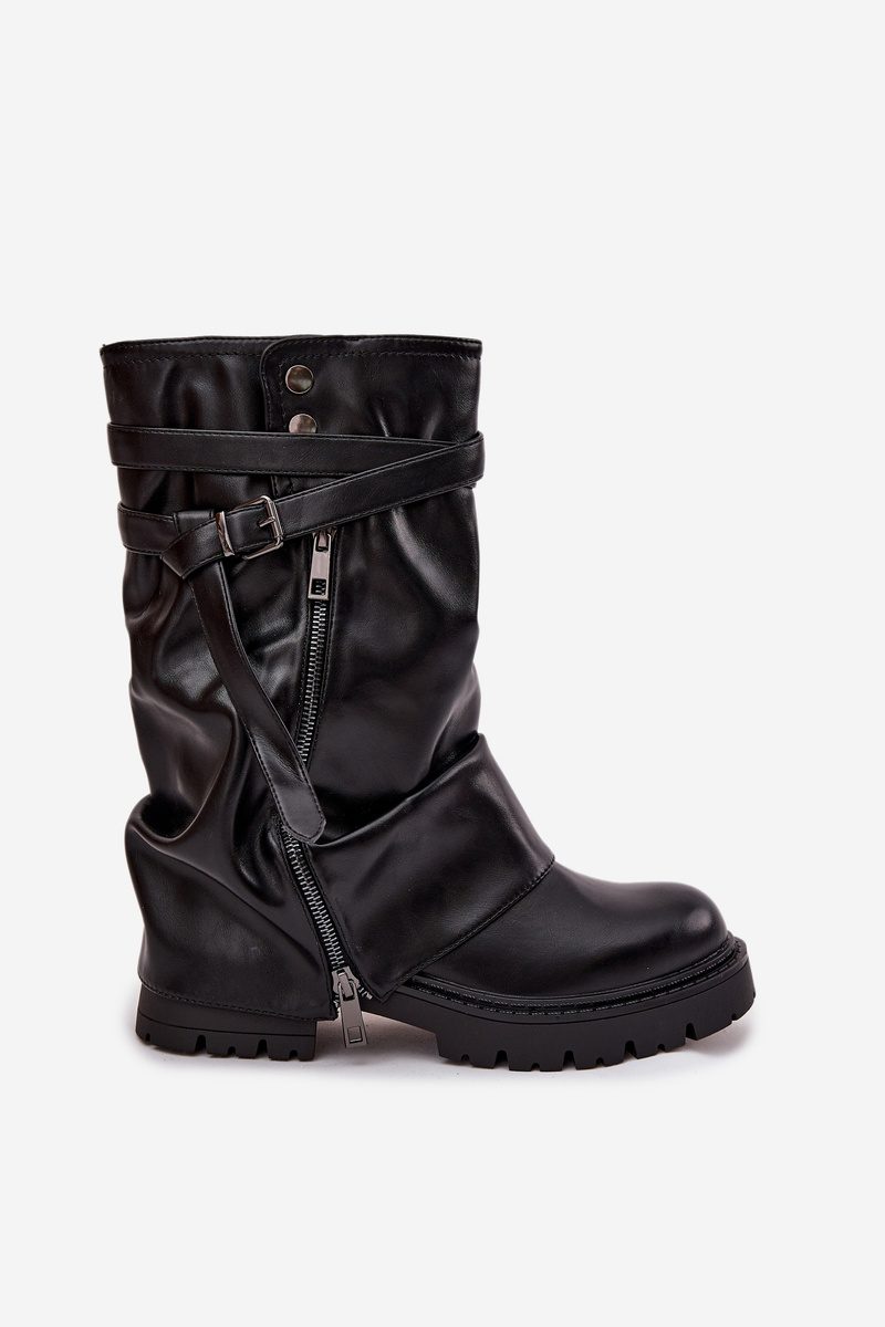 Dámske čižmy s obrátenou hornou časťou do polovice lýtka s remienkom Čierne Darisa