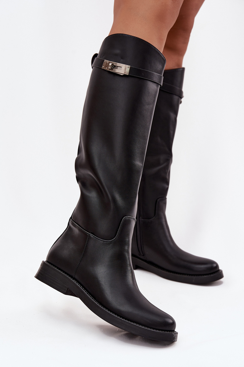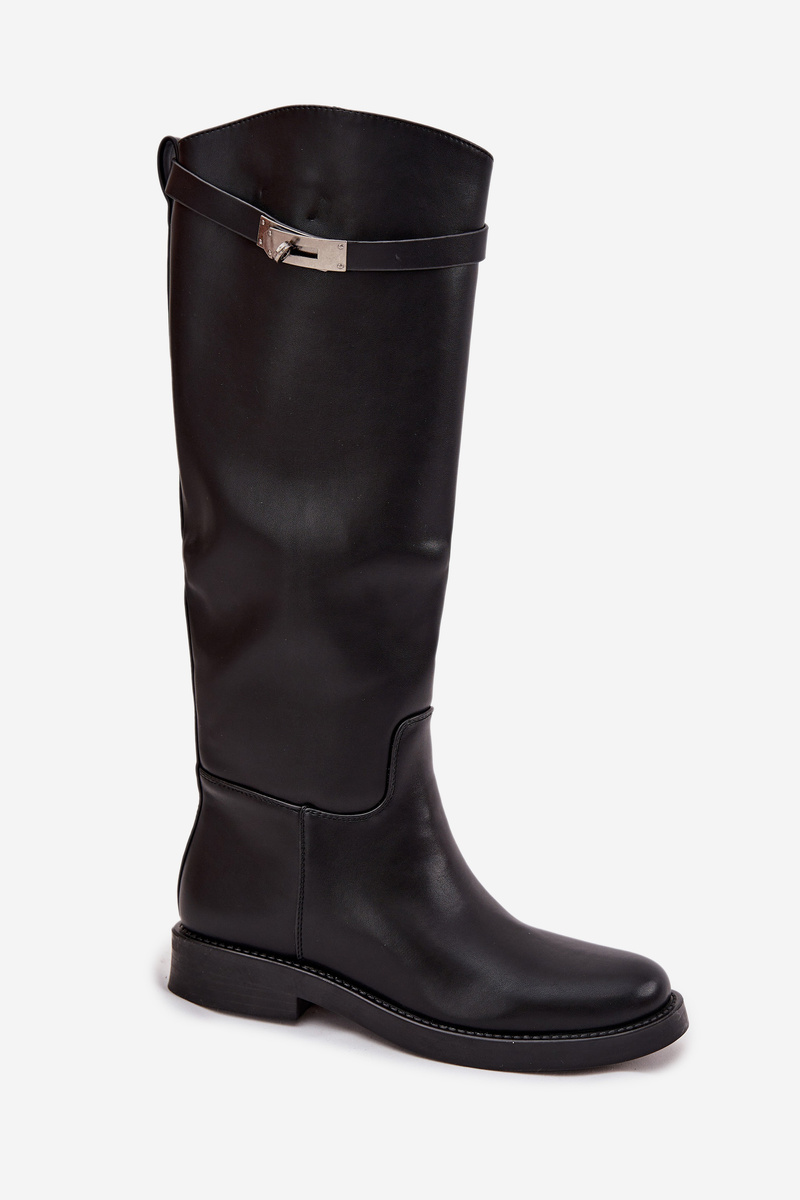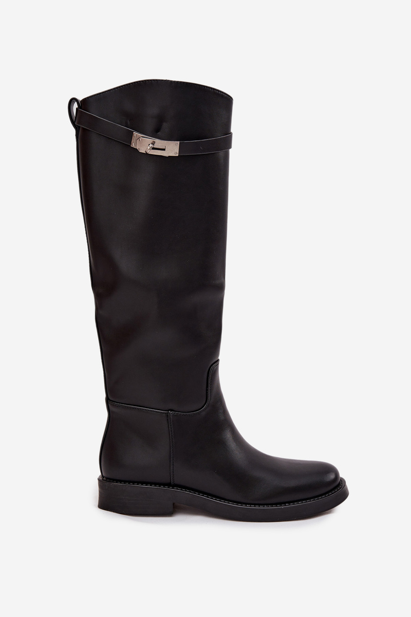 Dámske čižmy s ozdobným pásom Eko koža Čierne Palisse