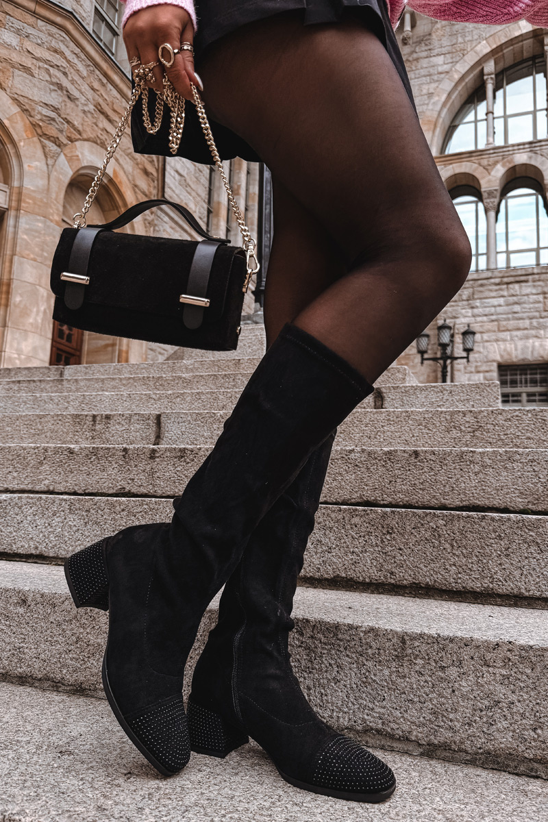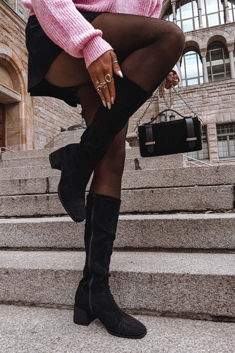 Dámske čižmy s ozdobou na bloku ekologická semiš Čierne Ivanna