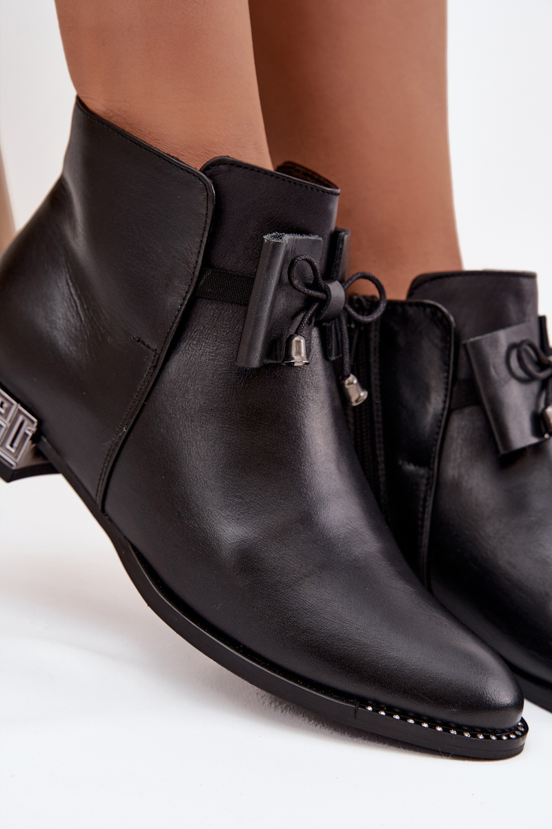 Dámske čižmy z pravej kože na nízkom podpätku Zazoo 1396 Čierne