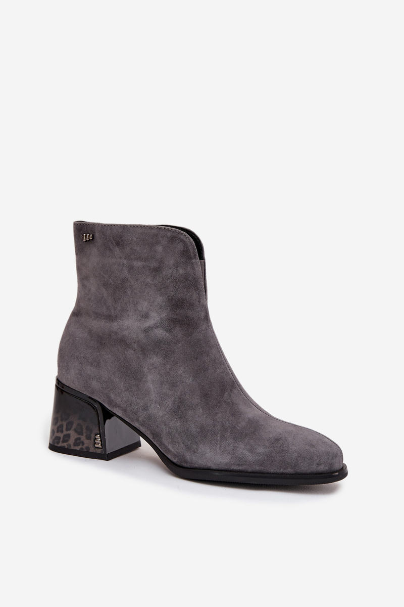 Dámske čižmy z prírodného semišu na opätku zateplené Vinceza 66806 šedé