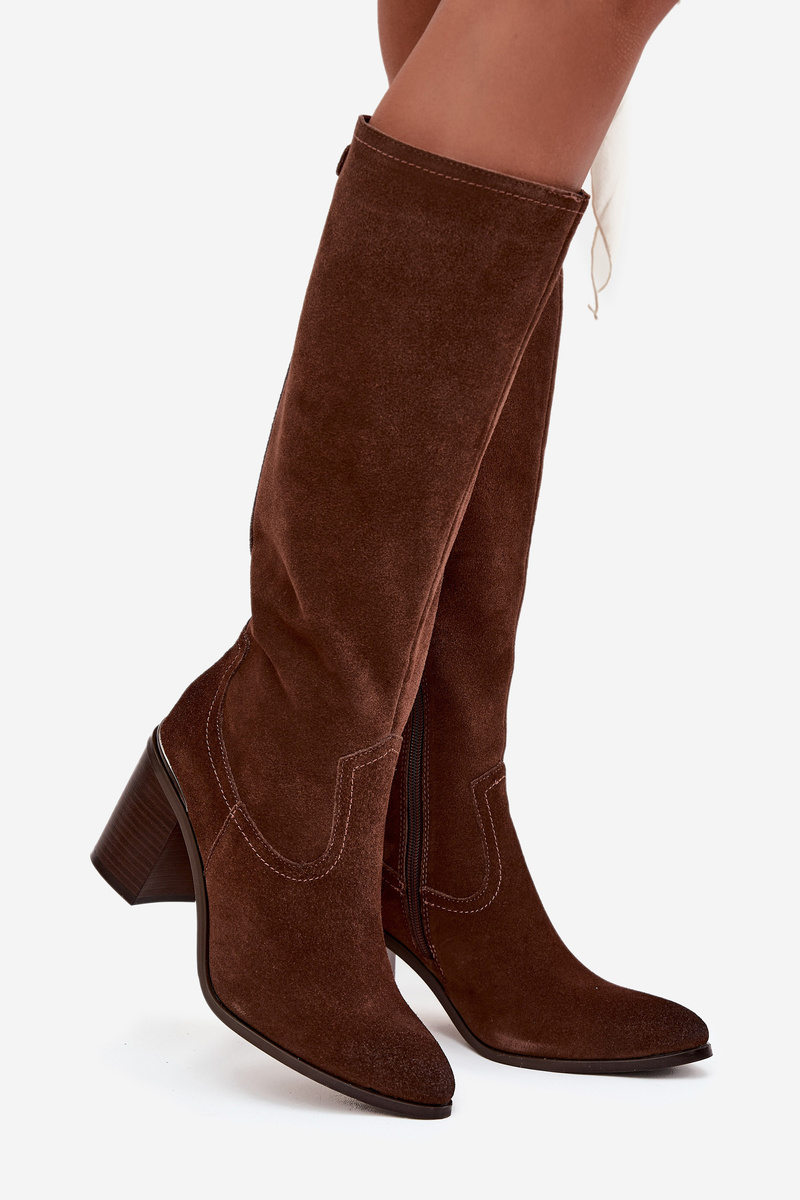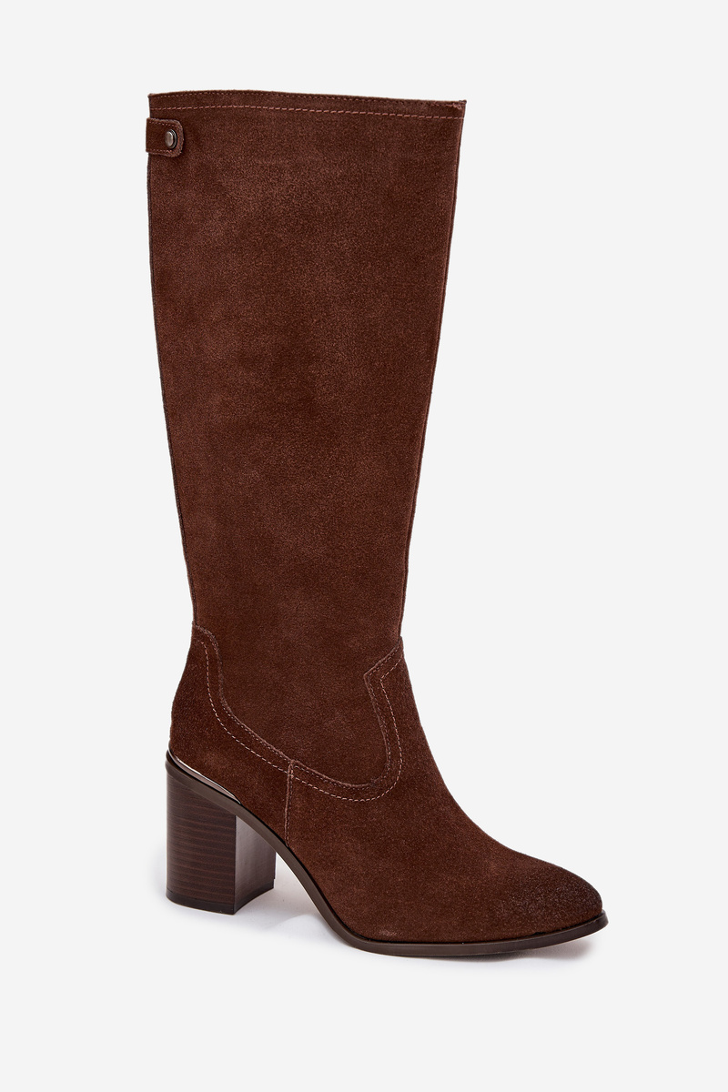 Dámske čižmy z prírodného semišu s vyhriatým opätkom Sergio Leone KZ25668-S hnedé